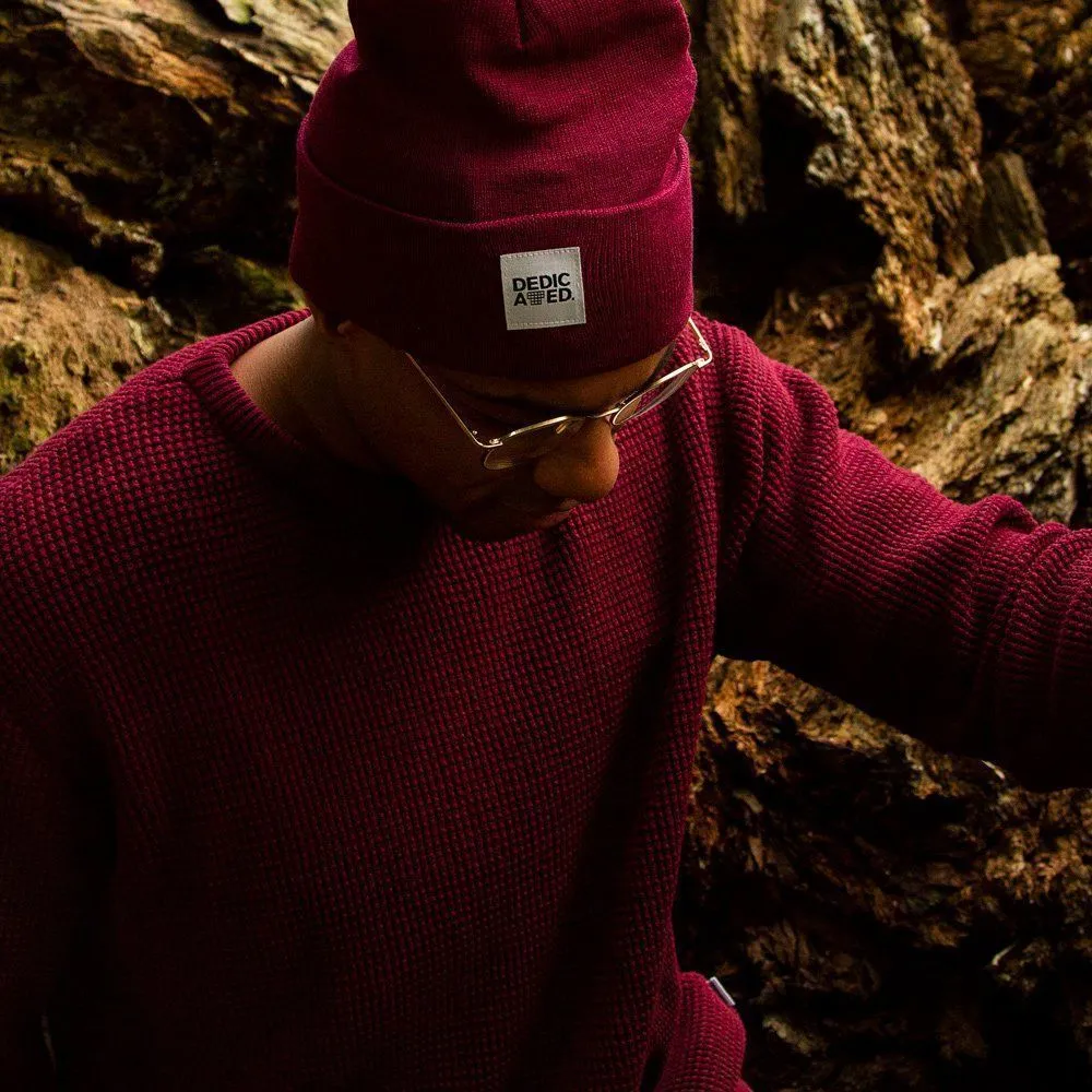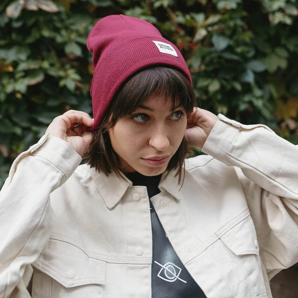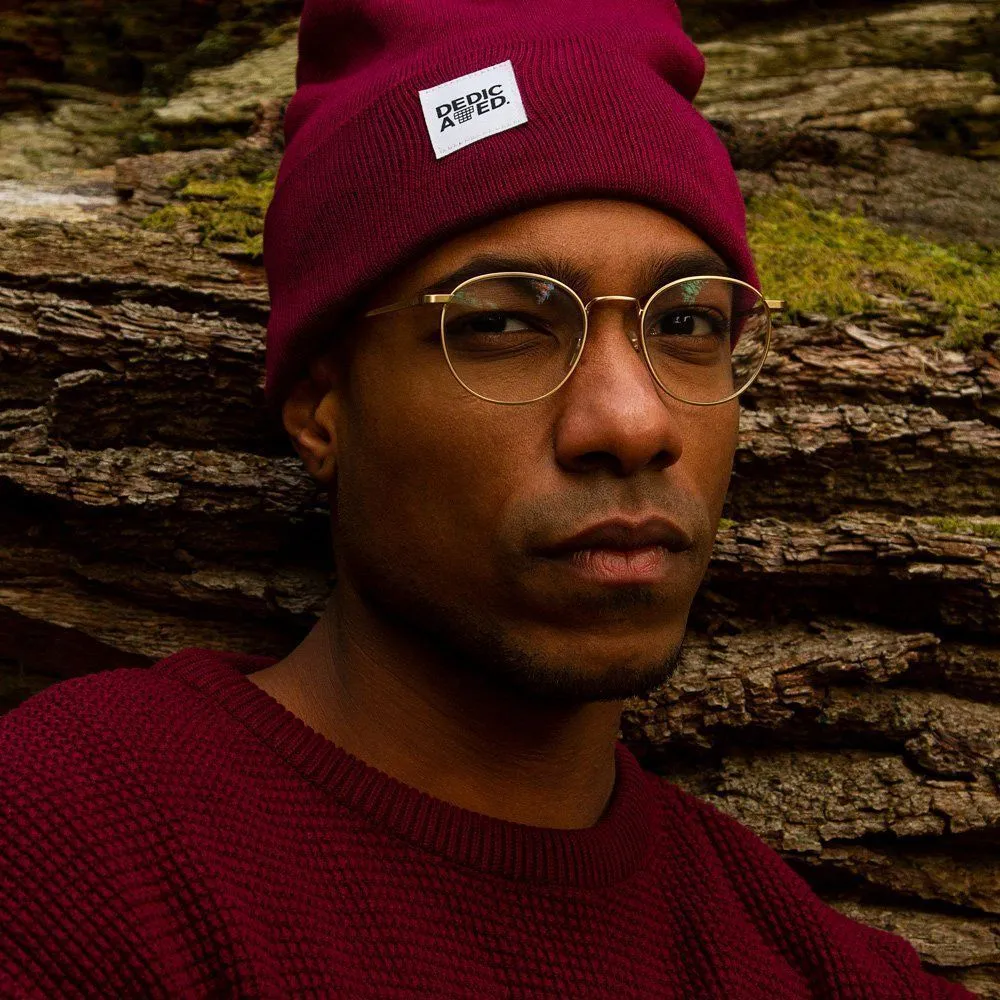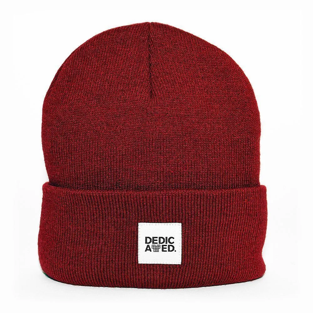 Классическая шапка Kiruna цвета бургунди от шведского бренда Dedicated, изготовленная из переработанных пластиковых бутылок.