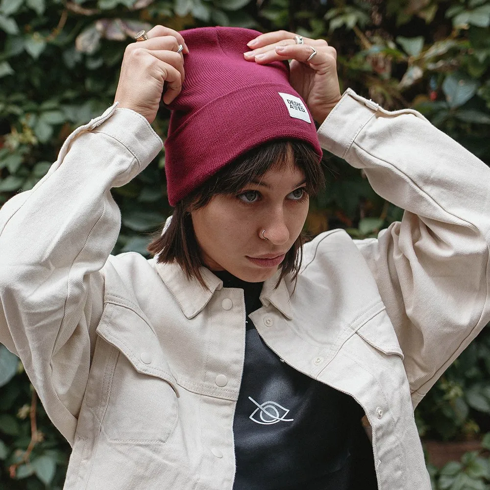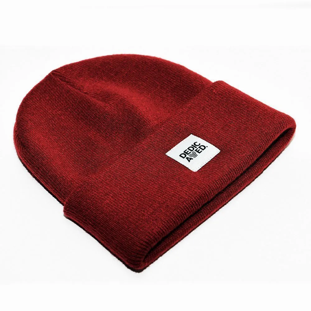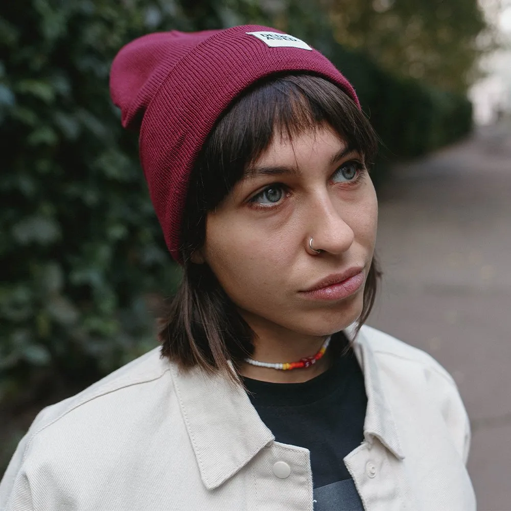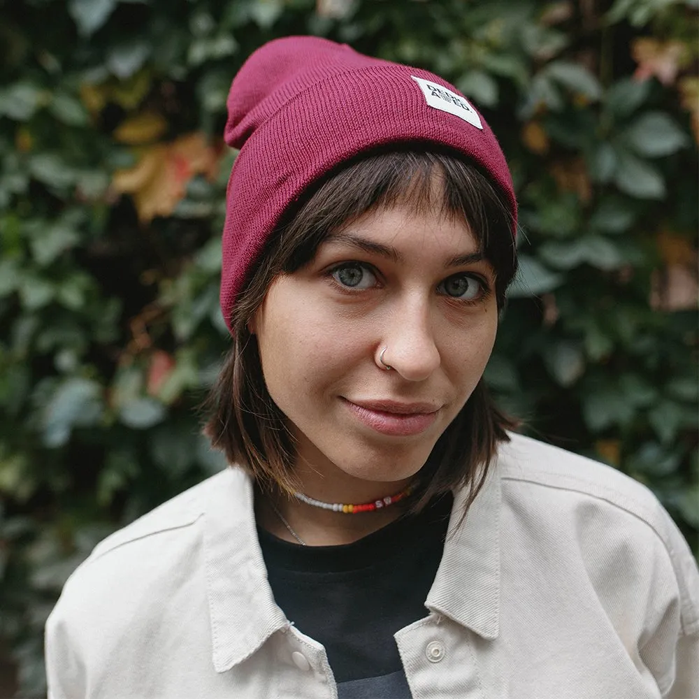 Классическая шапка Kiruna цвета бургунди от шведского бренда Dedicated, изготовленная из переработанных пластиковых бутылок.