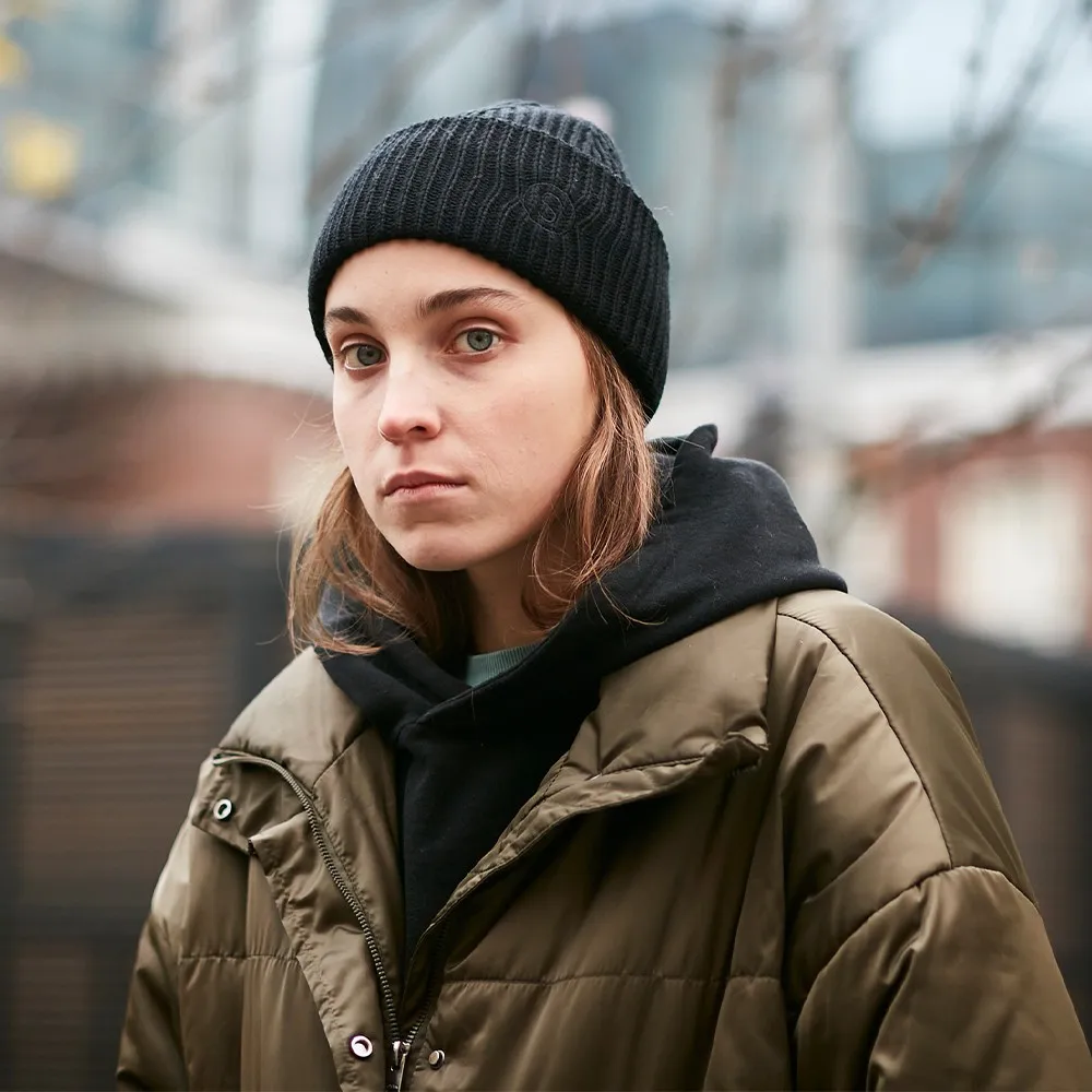 Шерстяная шапка фактурной вязки в рубчик, что обеспечивает плотное облегание и защиту от холода.