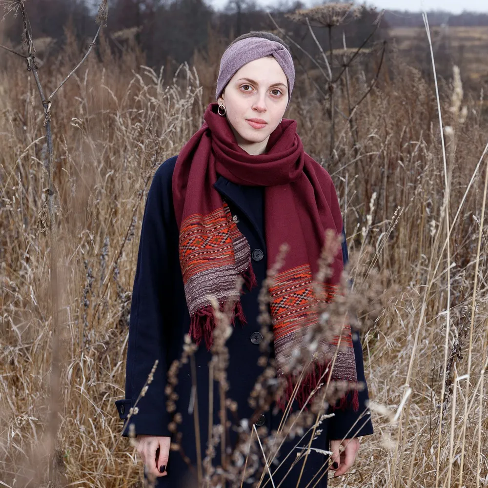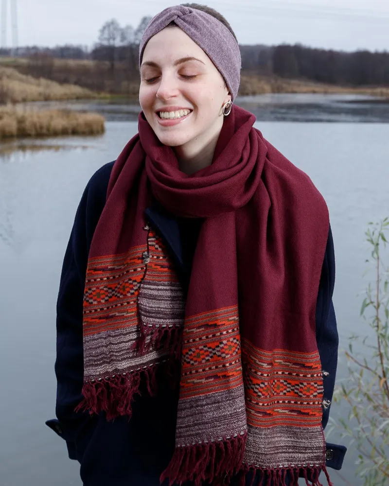 Теплая удобная повязка на голову из шерсти.