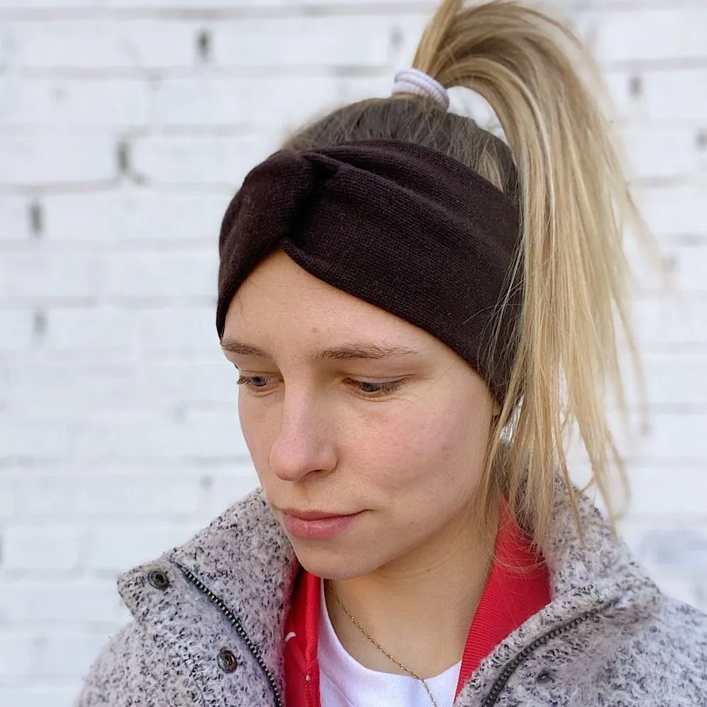 Теплая удобная повязка на голову из шерсти.