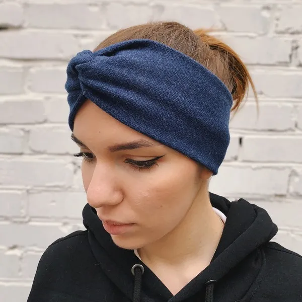 Теплая удобная повязка на голову из шерсти.