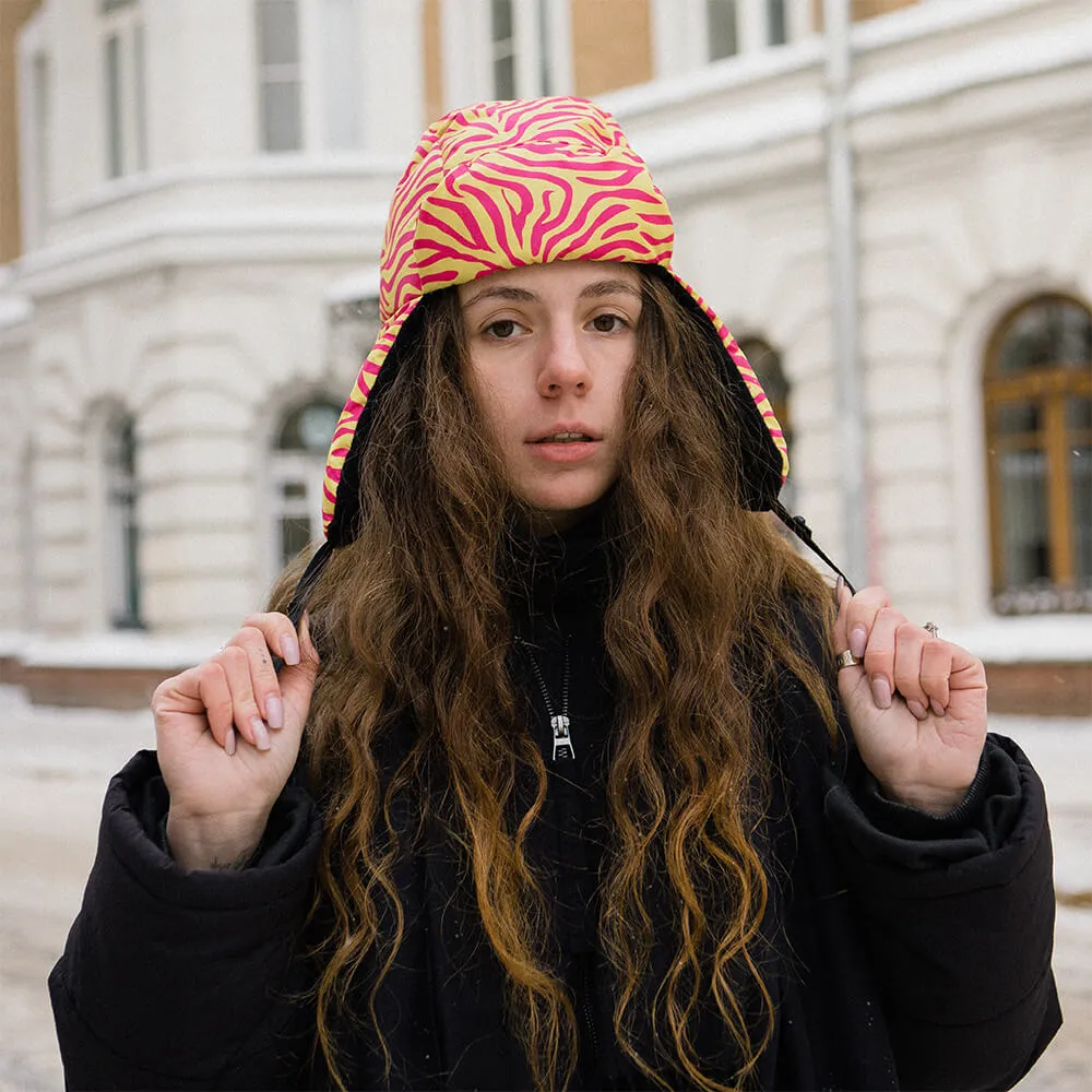 - При желании уши можно поднять наверх и закрепить застежкой.