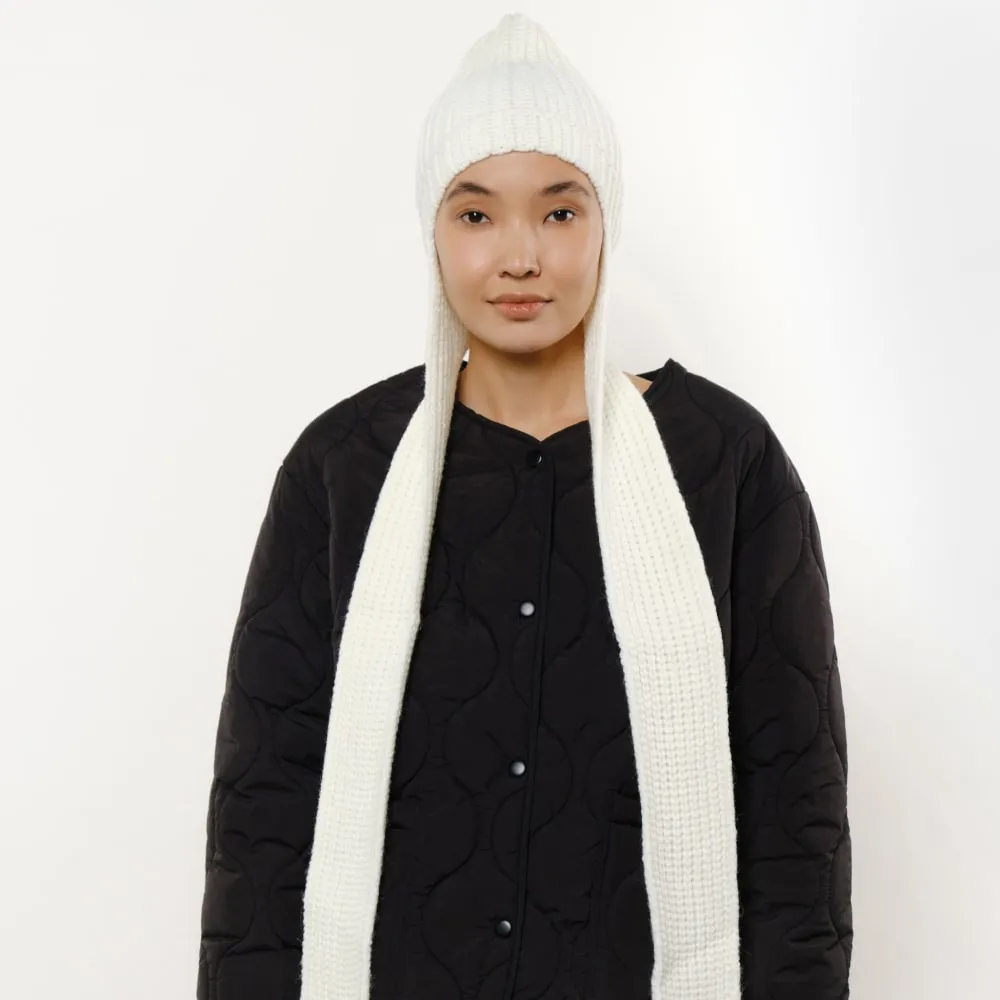 Вязаная ушанка-шарф - идеальный выбор для тех, кто ценит комфорт и стиль в одном головном уборе. Эта шапка не только защитит вас от холода, но и станет стильным аксессуаром, который дополнит любой образ. Помимо стандартной шапки, аксессуар имеет длинные "ушки", которые можно обмотать вокруг шеи.