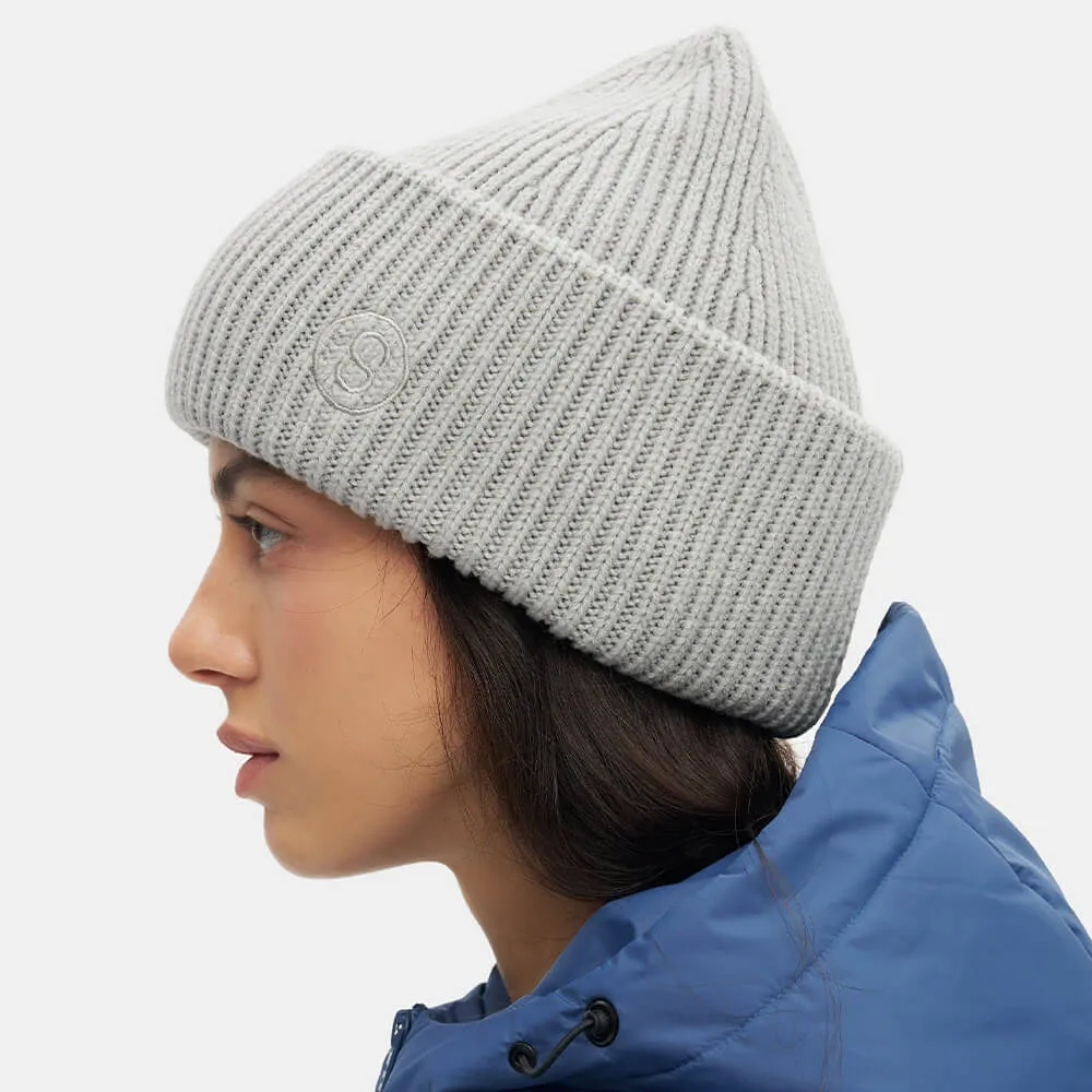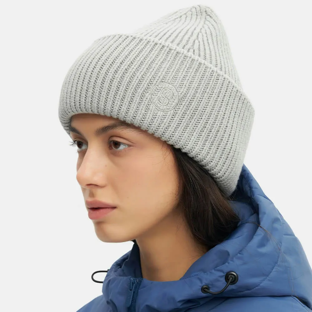 Высокая модель с широким отворотом и вышитым символом «S» в тон изделия. Фактурная вязка в рубчик обеспечивает комфортное облегание, защиту от холода и ветра.