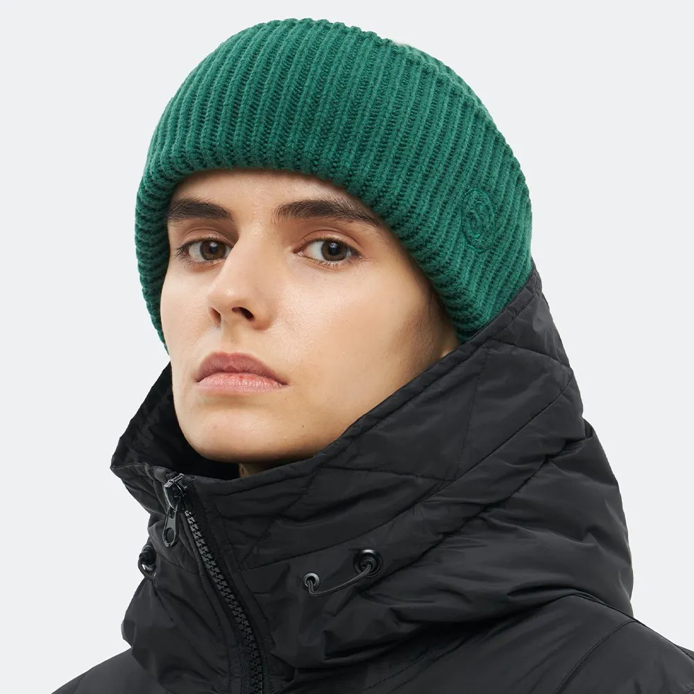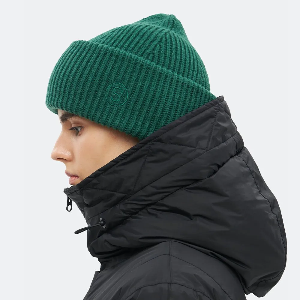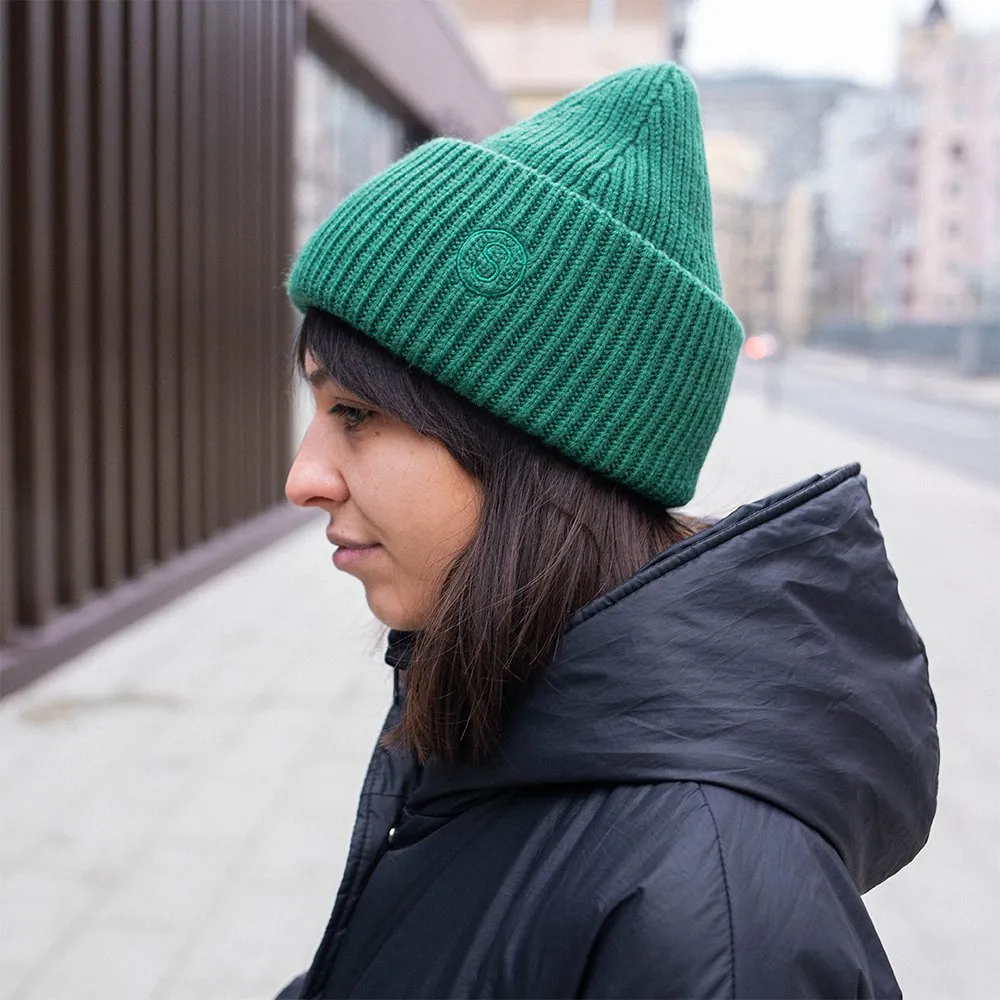 Высокая модель с широким отворотом и вышитым символом «S» в тон изделия. Фактурная вязка в рубчик обеспечивает комфортное облегание, защиту от холода и ветра.