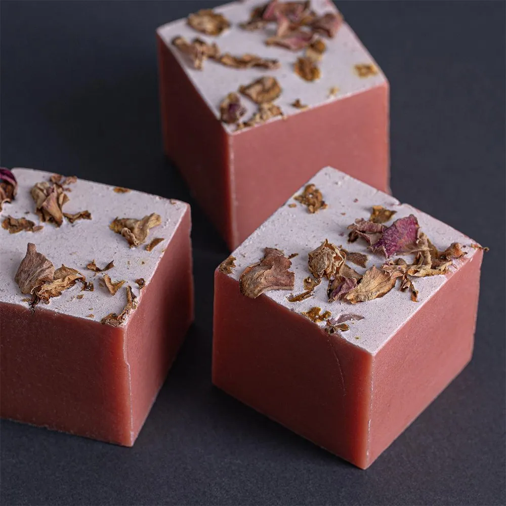 - Мыло с ароматом чайной розы и шиповника. Оно смягчает кожу благодаря маслам персика и миндаля, а его нежная пена хорошо подойдет чувствительной коже.
