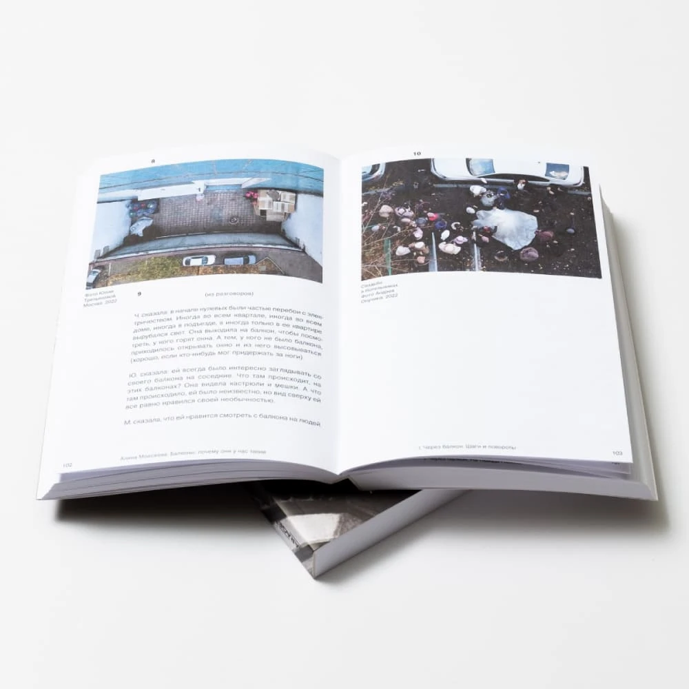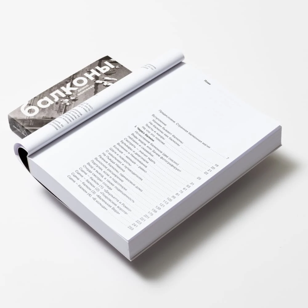 Перед вами художественный текст, его героиня — исследовательница. Она смотрит на балконы, слушает истории людей, делает выписки из книг и старых газет, разбирает фильмы и спектакли, выделяя сцены на балконах. Она сочетает заметки и записи разговоров с картинами и фотографиями, включает в текст короткие рассказы, иногда напоминающие сказки или сновидения. Это книга-выставка, ее можно начать читать с любого места.