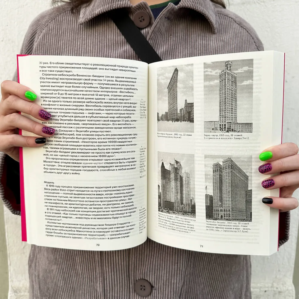Основатель роттердамского бюро ОМА и лауреат Притцкеровской премии Рем Колхас зарекомендовал себя как теоретик архитектуры в 1978 году, после публикации монографии о развитии Манхэттена в первой половине XX века. Голландец исследовал зарождение, эволюцию и закат феномена «манхэттенизма», благодаря которому Нью-Йорк смог вырасти вверх, многократно умножить свою площадь на вертикали башен и породить культуру радикальной пространственной перегрузки, превратившись в образец метрополиса новейшего времени. В книге Колхаса город предстает как сложный живой организм, не всегда покорный воле строящих его людей и порождающий особые, зачастую непонятные его современникам законы.