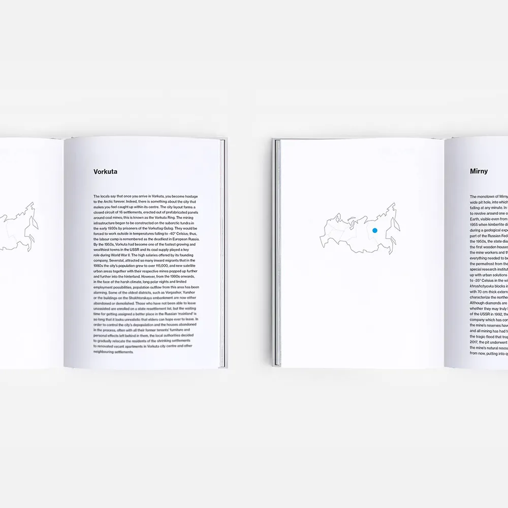 В девяти главах книги более 130 фотографий, сделанных российским фотографом Александром Веревкиным. Monotowns включает информативные тексты, дающие ценное представление о градостроительном развитии городов, и предисловие архитектурного критика Константина Бударина.