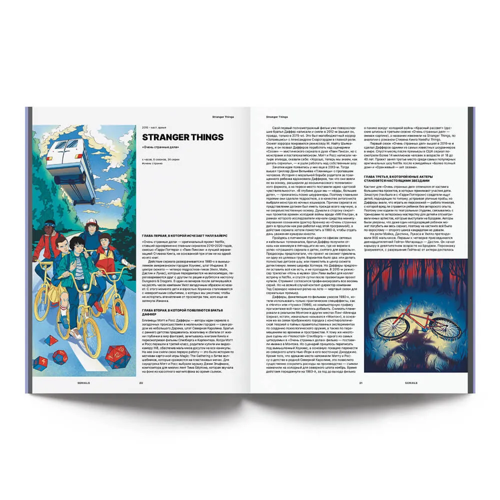 Получилось тринадцать сериалов, о которых Ornament сделали большие материалы: «Друзья», «Очень странные дела», «Черное зеркало», «Секс в большом городе», «Секретные материалы», «Во все тяжкие» и «Лучше звоните Солу», «Клан Сопрано», «Игра престолов», «Наследники», «Офис», «Дрянь», «Шерлок». Все они привносили что-то новое, меняли правила и собирали толпы фанатов.