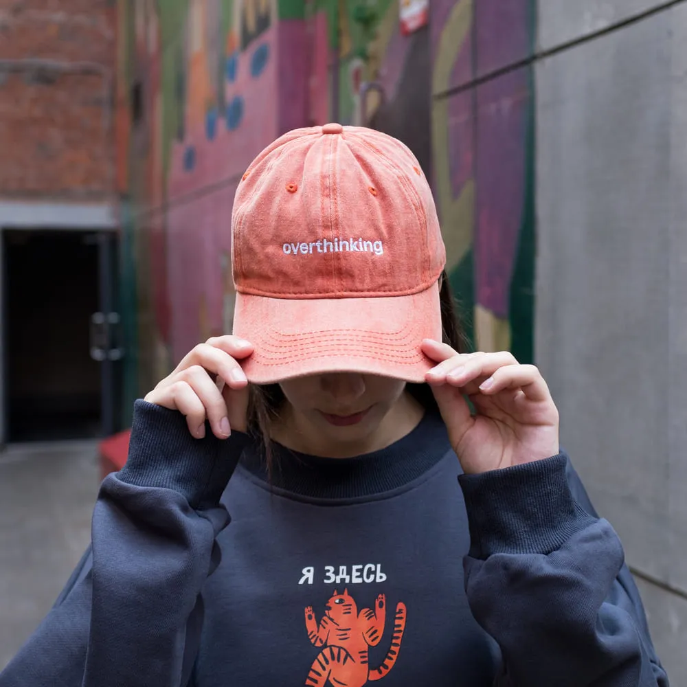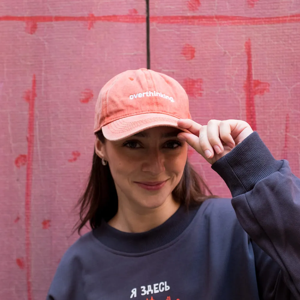 Классная добрая кепка с вышивкой "overthinking"