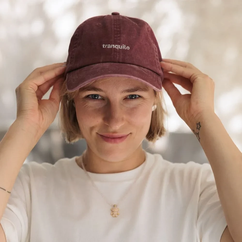 Классная добрая кепка с вышивкой серебряной нитью "tranquilo"
