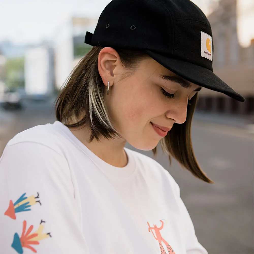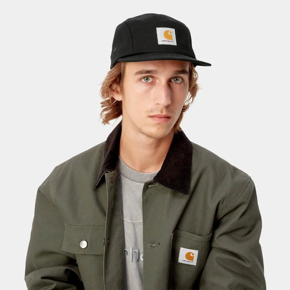 Классическая пятипанельная черная кепка Backley от Carhartt WIP, выполненная из плотной ткани на основе хлопка для любого времени года, кроме зимы.