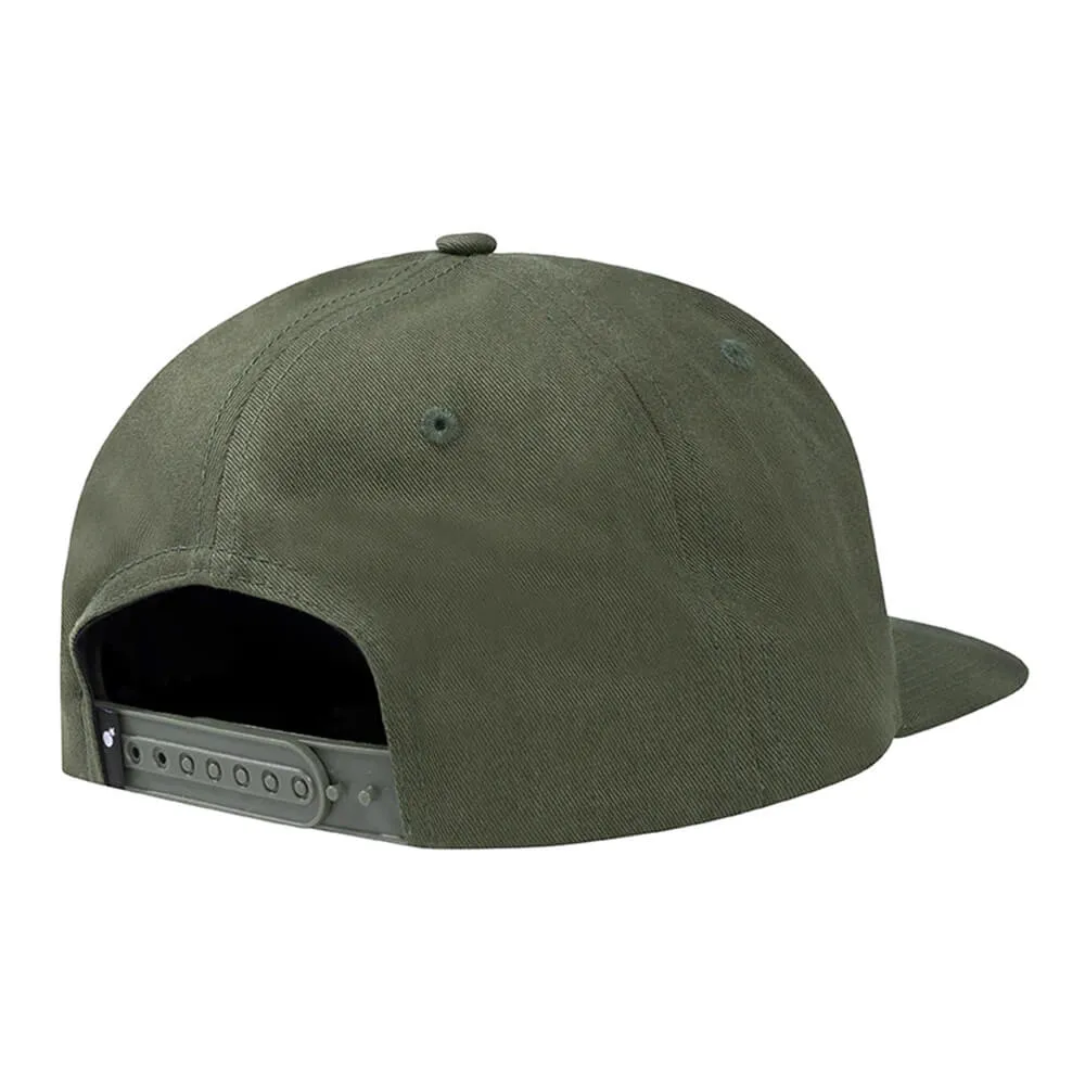 Классическая оливковая 7-ми панельная кепка с прямым козырьком.