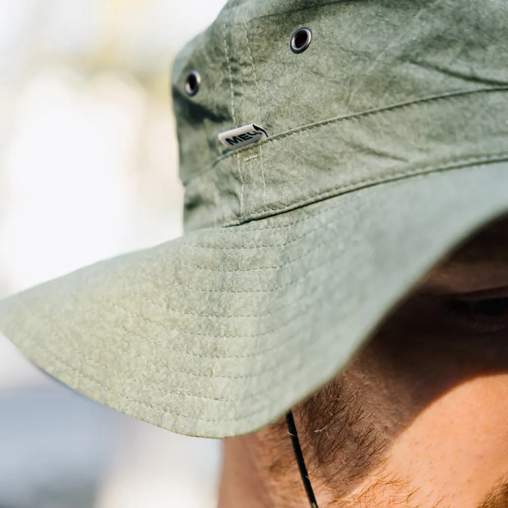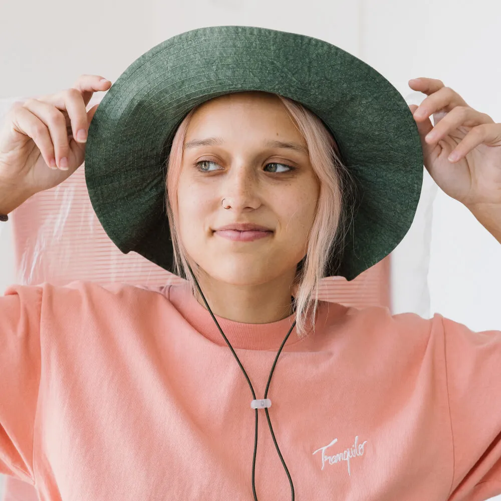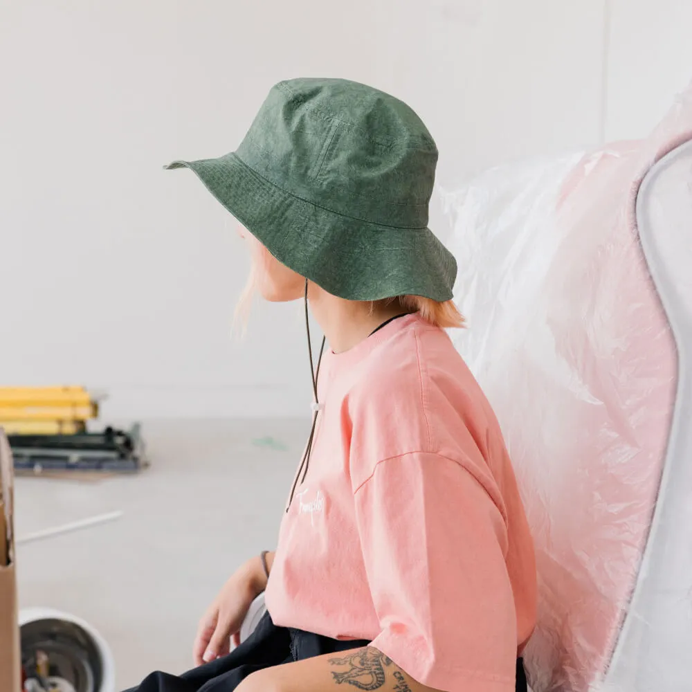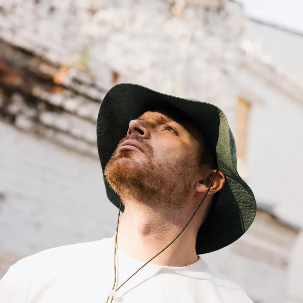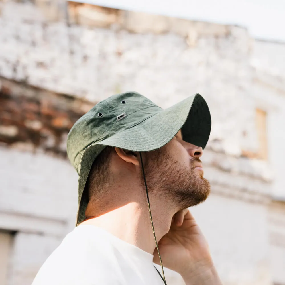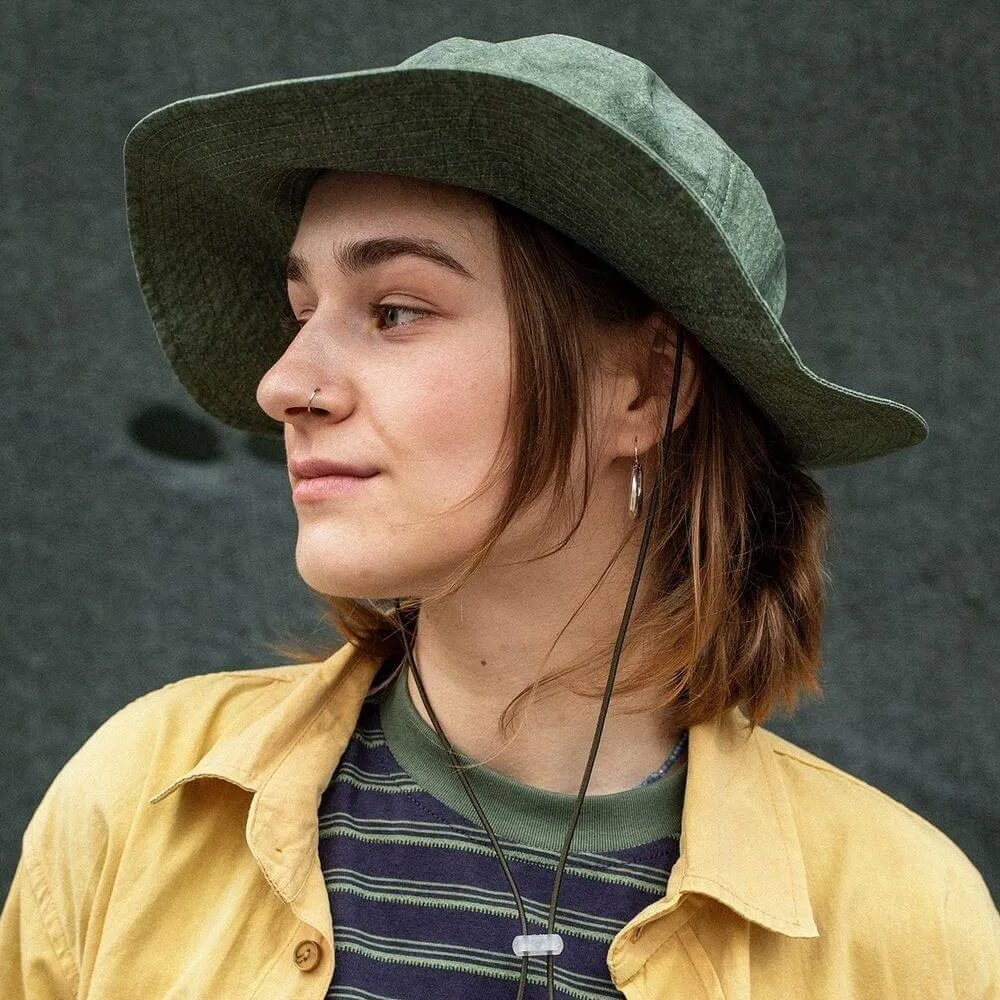 Универсальная панама с широкими мягкими полями и вентиляционными отверстиями, сшитая из хлопковой ткани средней плотности и окрашенная по технологии Garment Dyed для достижения неоднородного оттенка материала.