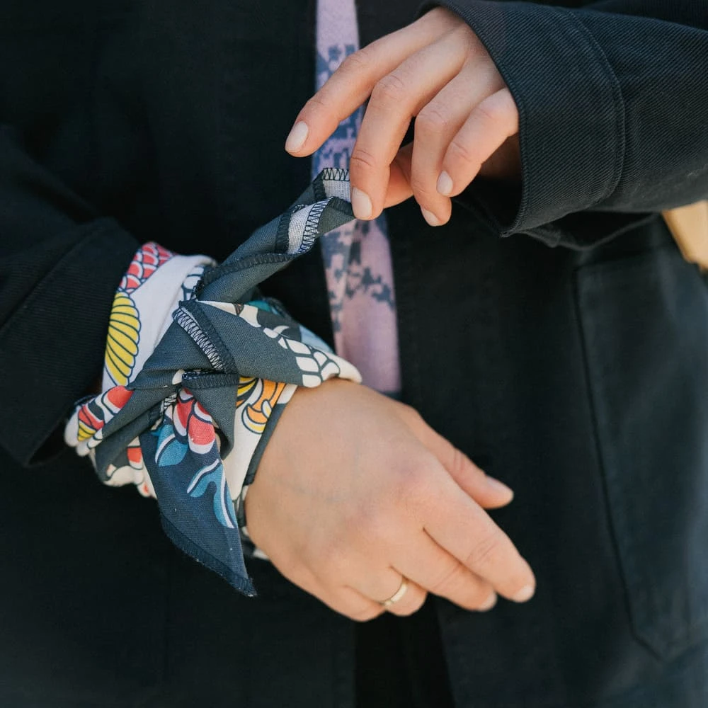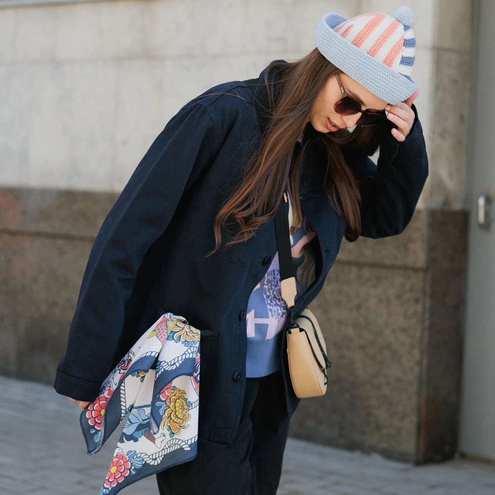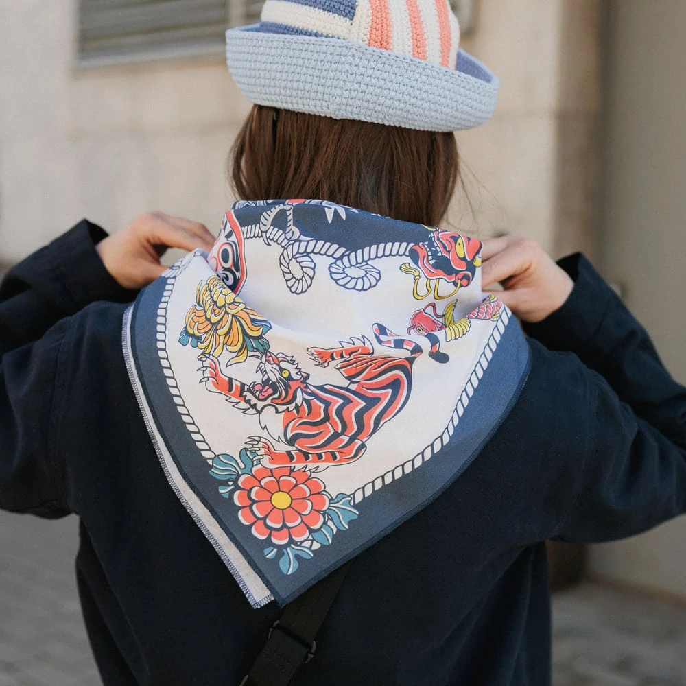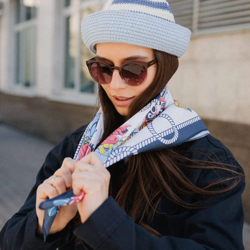 Та самая вещь, которая всегда находит своё место: сегодня на голове, завтра на шее, потом на сумке или в кармане «на всякий случай». Можно носить как платок, повязать как галстук, скрутить и завязать как хочется - без правил и без лишней серьёзности. Мы сделали их из плотного хлопка, чтобы они держали форму, но при этом оставались мягкими и приятными к коже. Цвета и принты — такие, чтобы работали и как акцент, и как спокойная база.