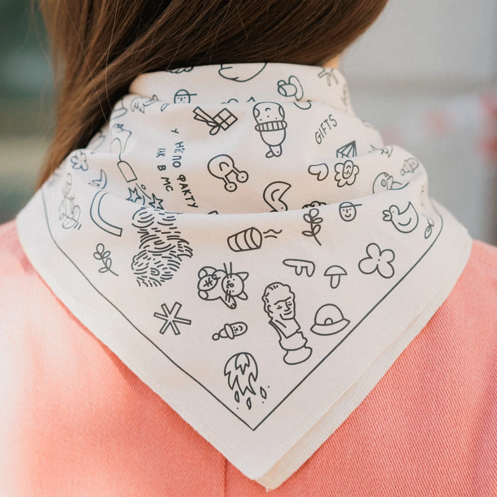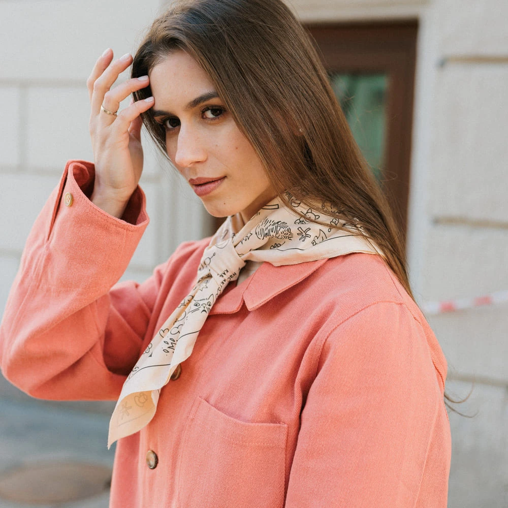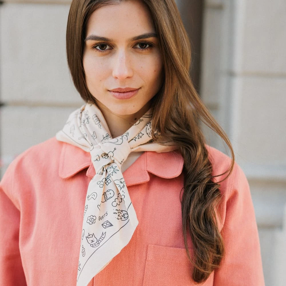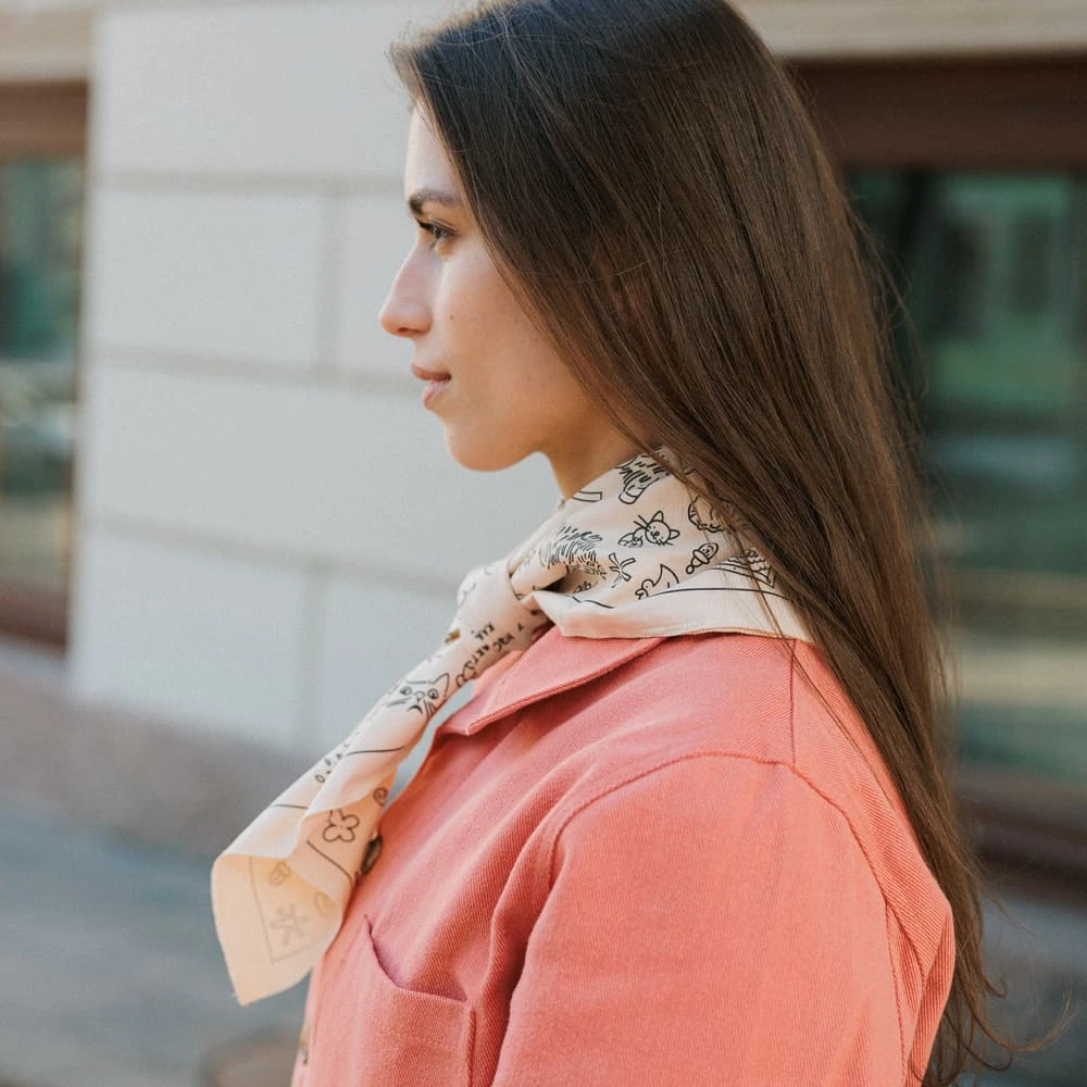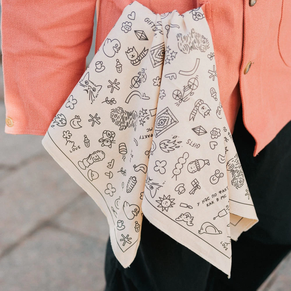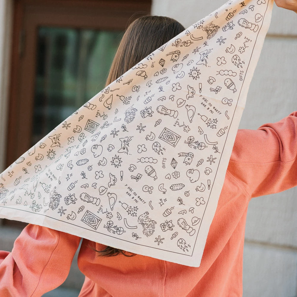 Та самая вещь, которая всегда находит своё место: сегодня на голове, завтра на шее, потом на сумке или в кармане «на всякий случай». Можно носить как платок, повязать как галстук, скрутить и завязать как хочется - без правил и без лишней серьёзности. Мы сделали их из плотного хлопка, чтобы они держали форму, но при этом оставались мягкими и приятными к коже. Цвета и принты — такие, чтобы работали и как акцент, и как спокойная база.