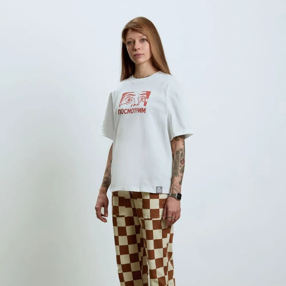 Футболка Barking Store ПОСМОТРИМ оверсайз цвет Белый купить в интернет магазине Friend Function