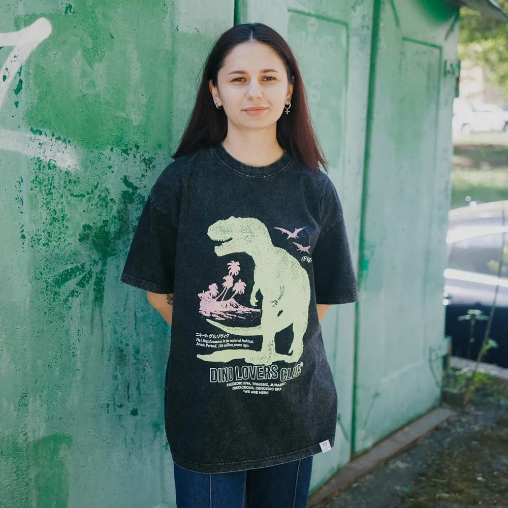 Футболка с мощным динозавром с весенними молниями любви и нежности, вырывающимися из его зубастой пасти и направленными на своих родных, близких, друзей, маму, собачек, кошечек, птичек, дельфинов и разных рыб.