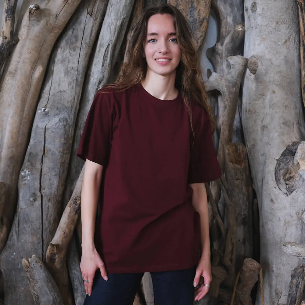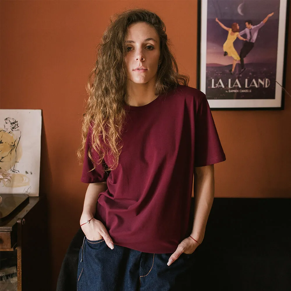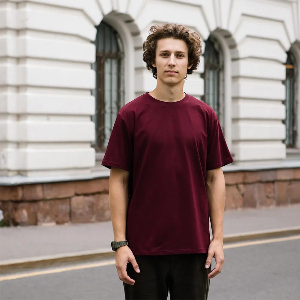 Футболка отменного качества, цвета вишня. Та самая базовая футболка, которую так трудно найти.