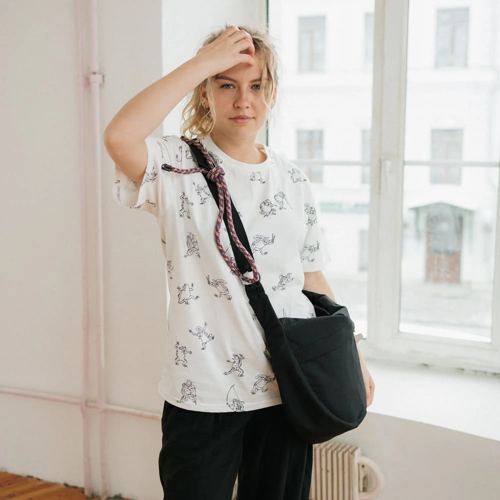 Мы разрабатывали эту футболку очень долго, 3 раза отчаивались, но все же смогли сделать футболку, которая подходит людям разных полов и разных комплекций.