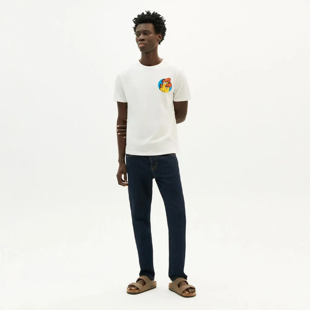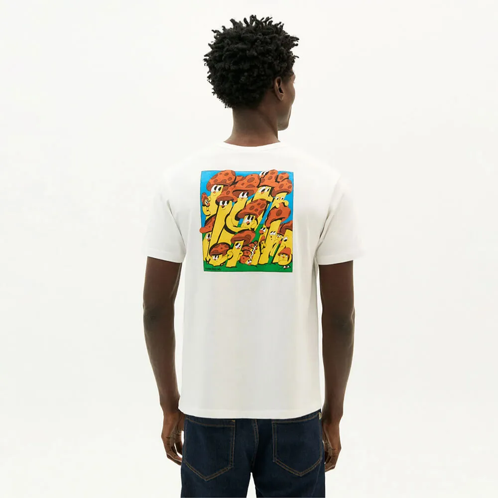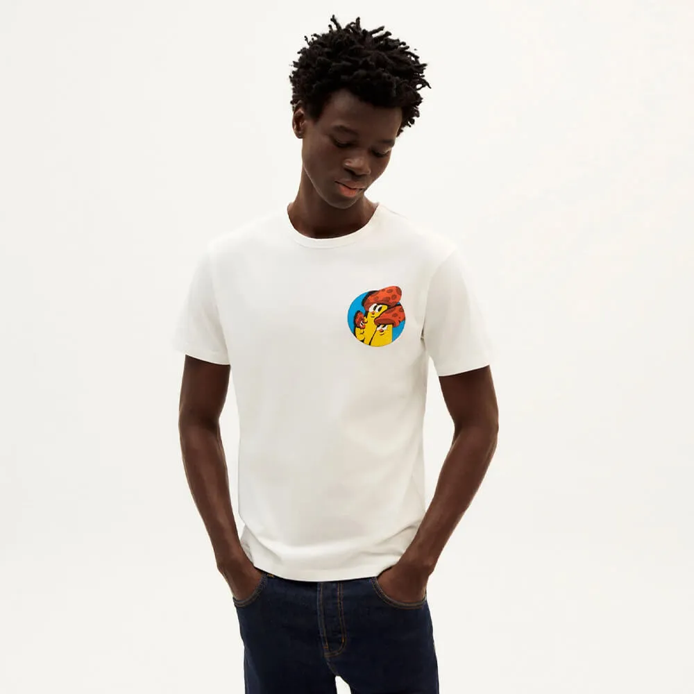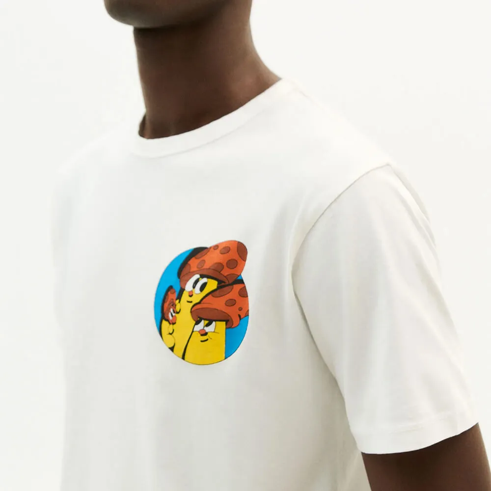 Белая футболка Funghi из 100% органического хлопка (140 г/м2) от испанского бренда Thinking Mu.