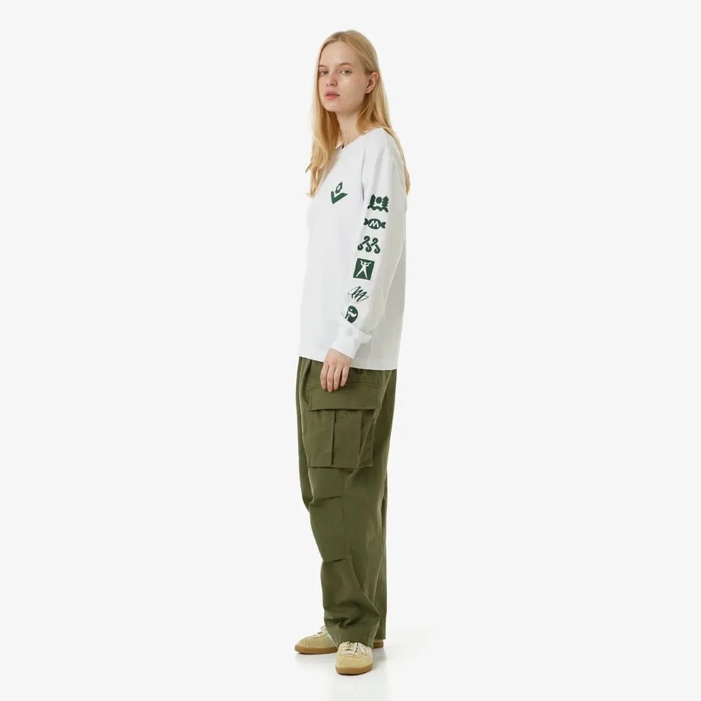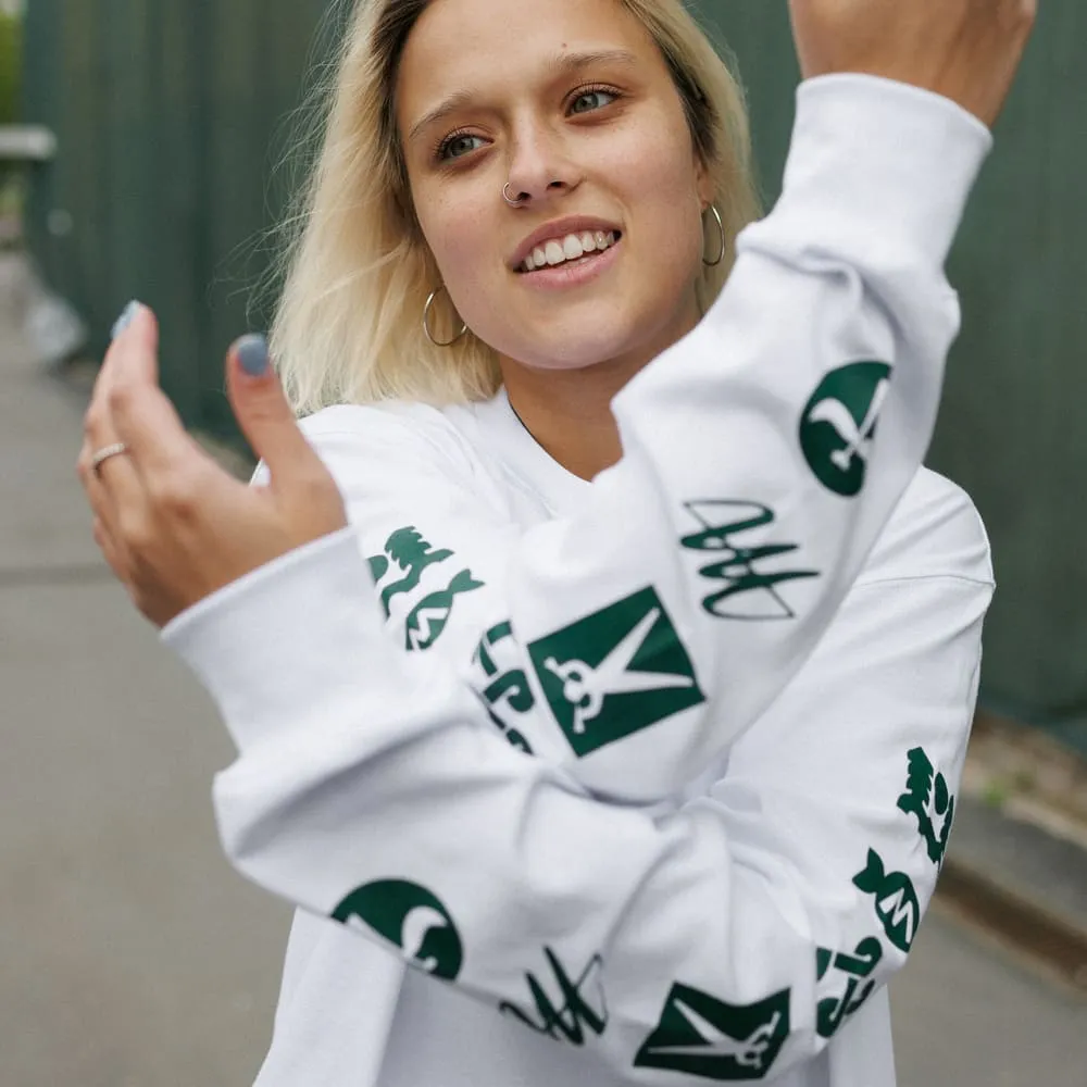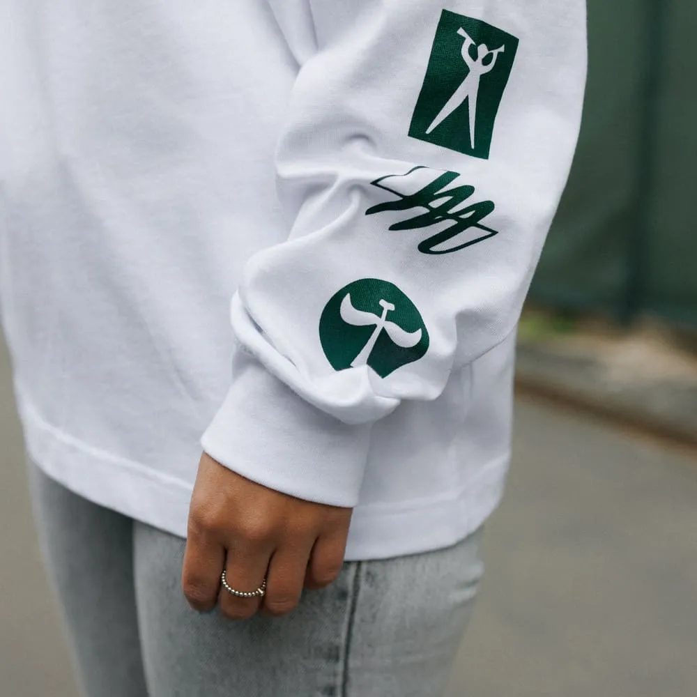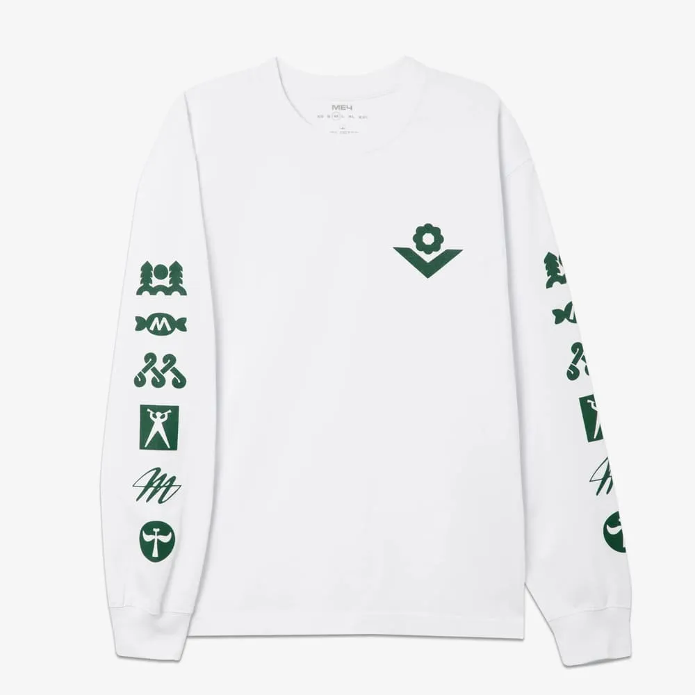 Свободный и удобный лонгслив из хлопка средней плотности. На груди — минималистичная графика, а на рукавах — цветочные принты, будто напоминание о тёплых днях и простых радостях.
