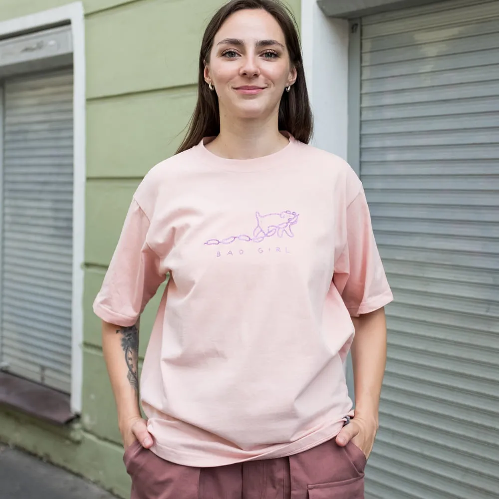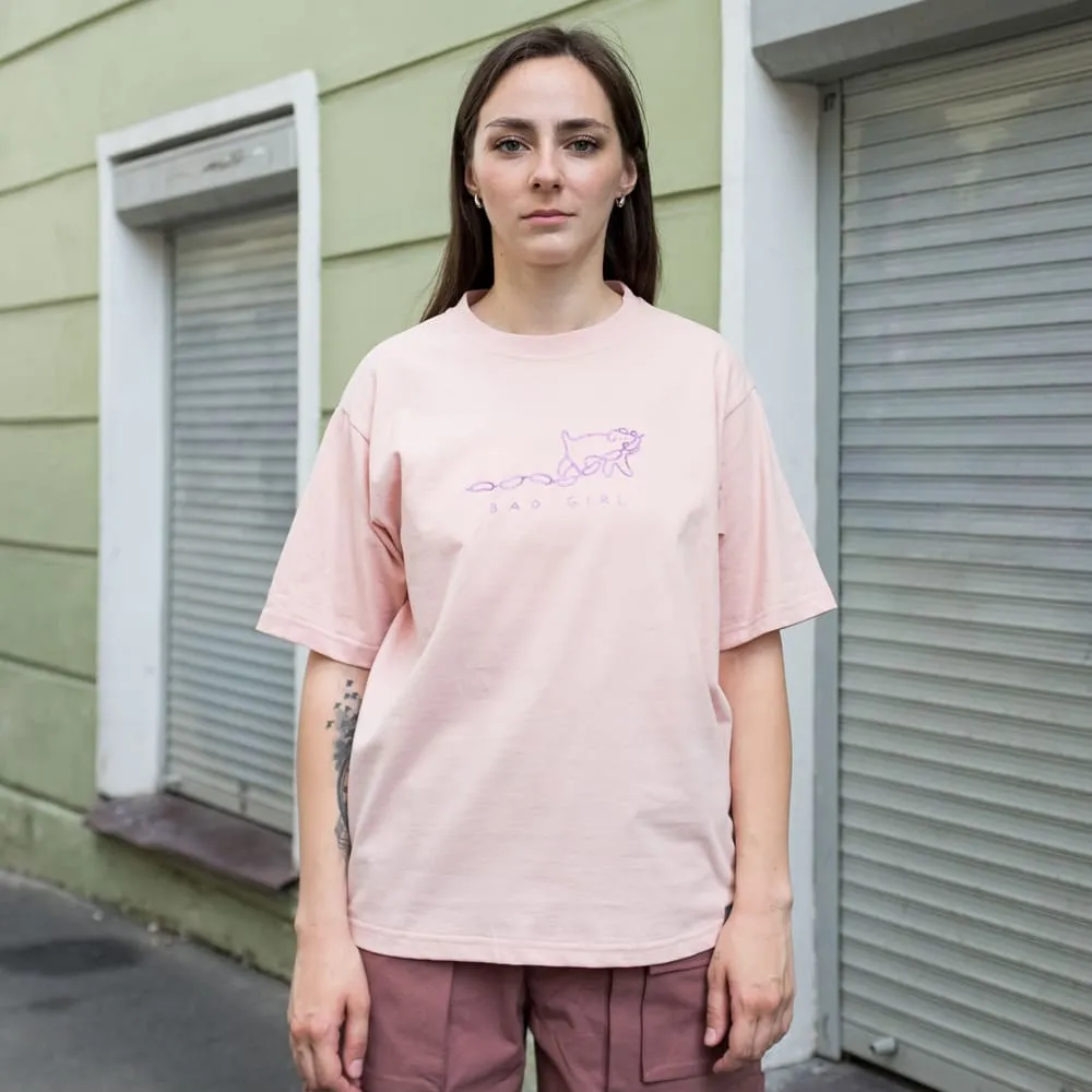 • Оверсайз футболка Barking Store Bad girl женская розовая - фото 1