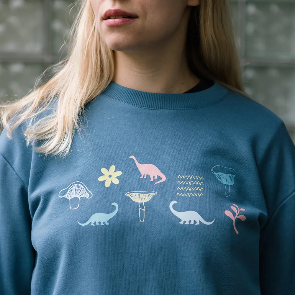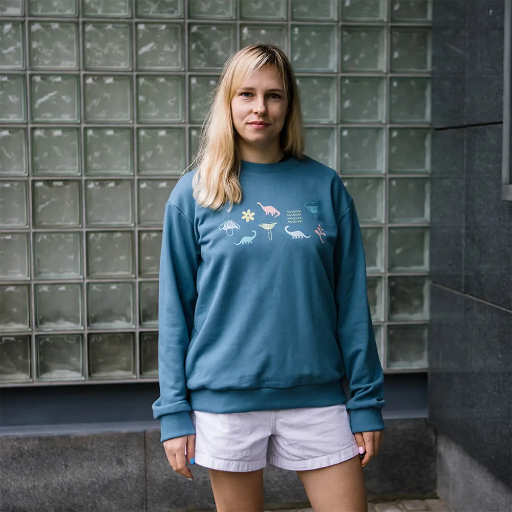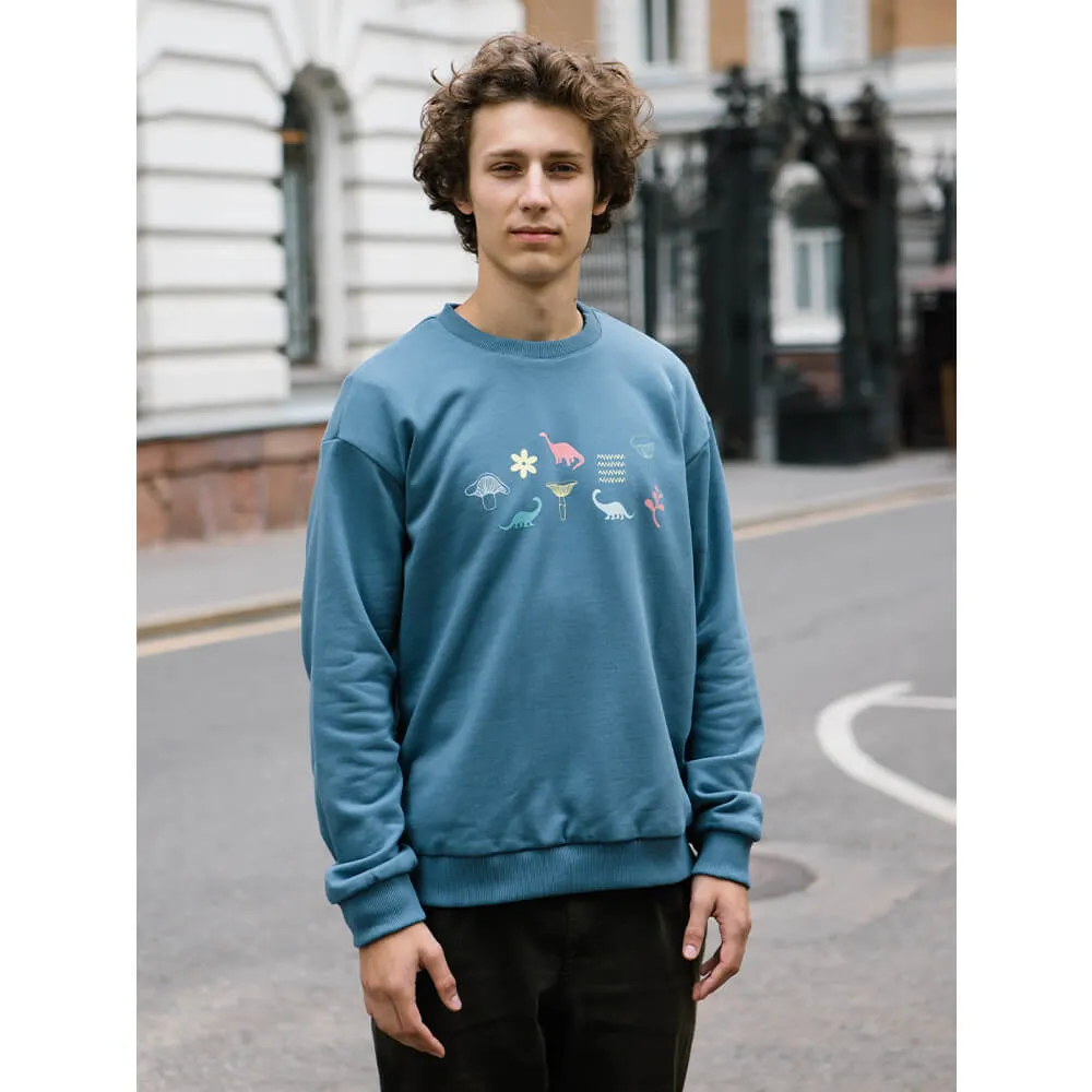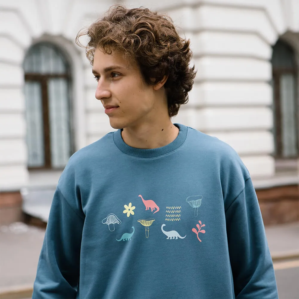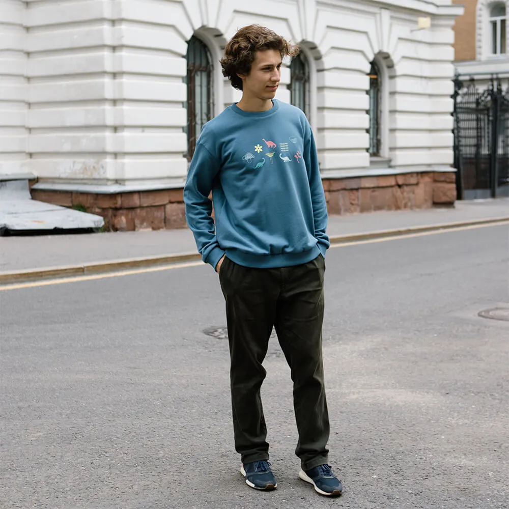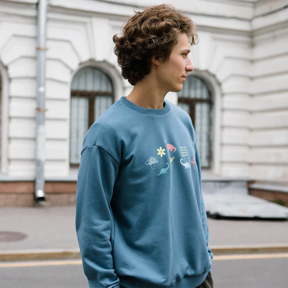 Свитшот собственного производства для наших фанатов и для фанатов динозавров. Мезозойская эра делится на три периода: триасовый, юрский и меловой. Этот свитшот про юрский период.