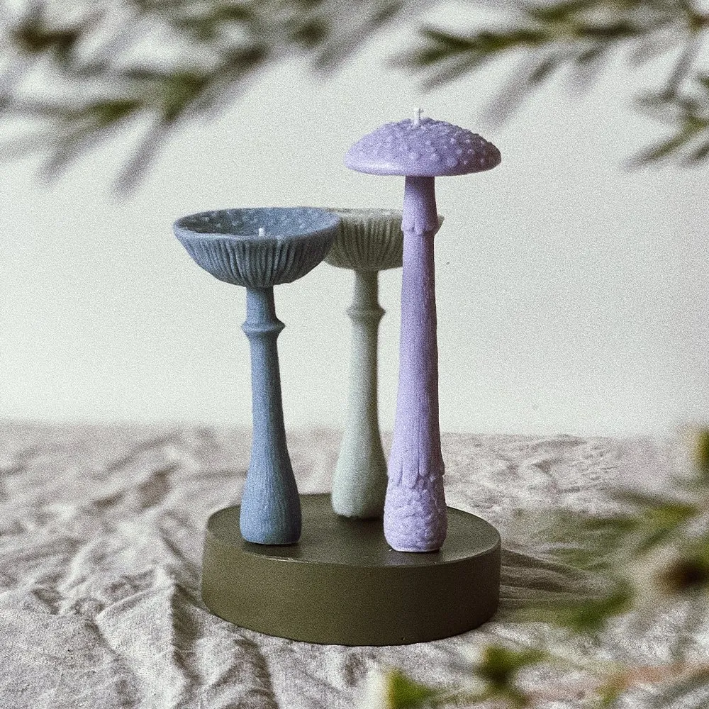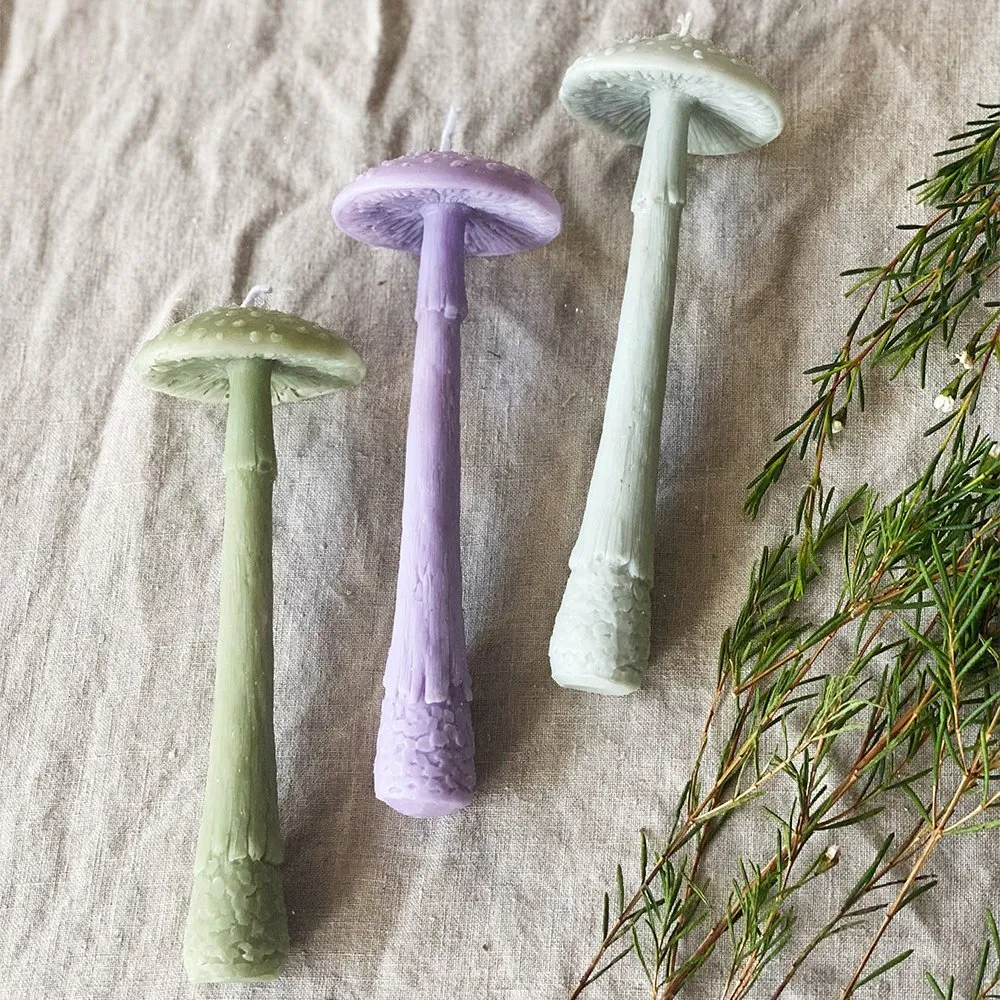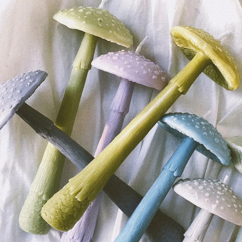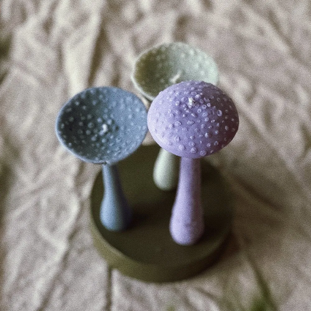 Столовая свеча молодой высокий Мухомор лиловый из серии «the mushrooms candles club», созданной в коллаборации со скульптором, что делает свечи из этой линейки - эксклюзивными. Прекрасно подходит для придания ужину волшебной атмосферы, а также станет уникальным акцентом в вашем интерьере.
