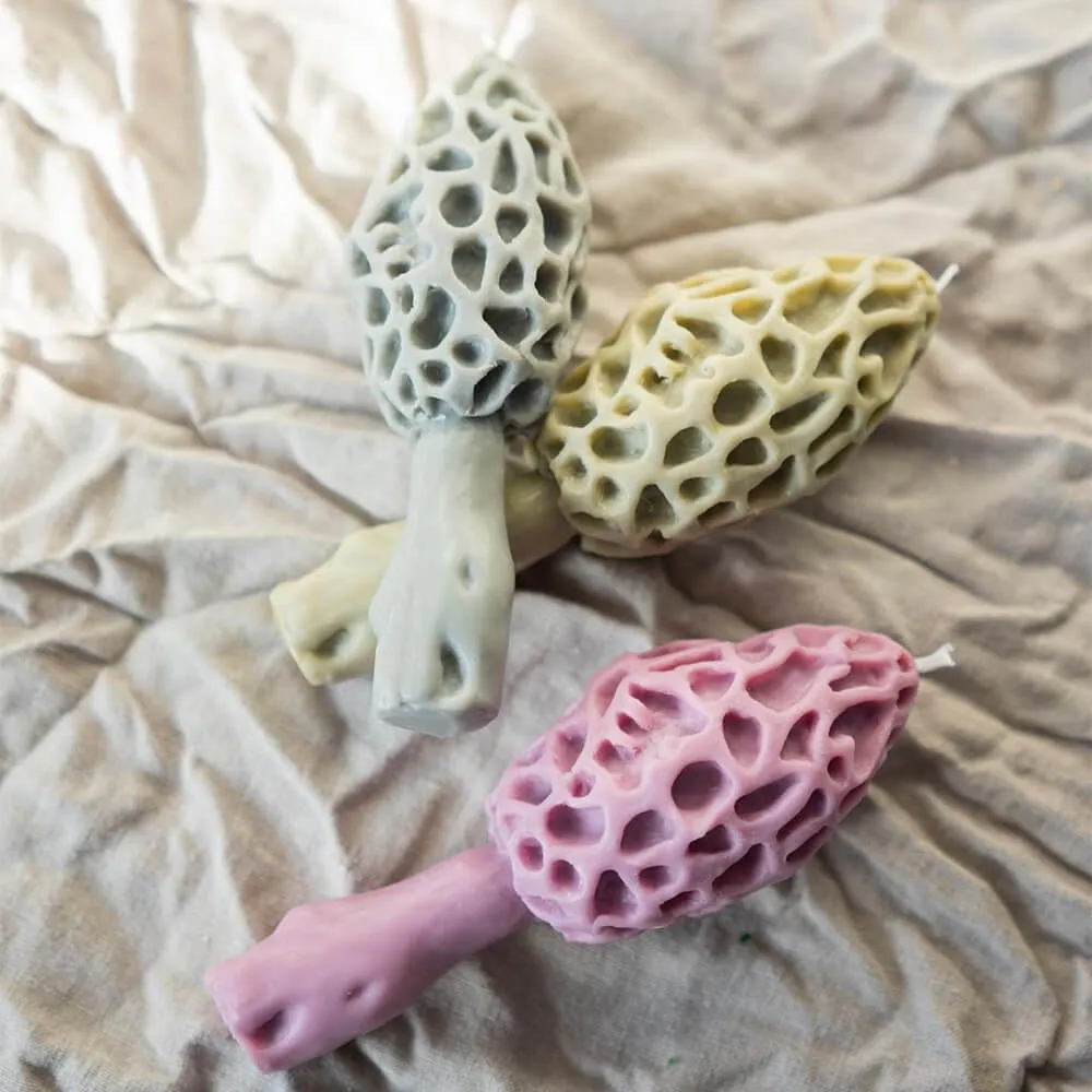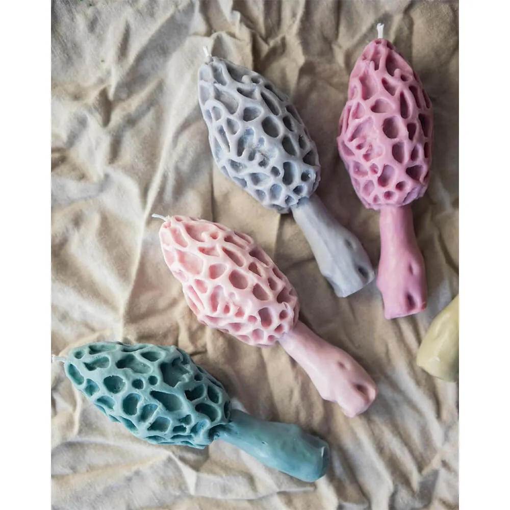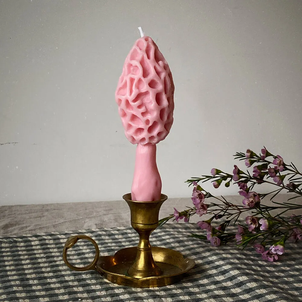 Столовая свеча Сморчок лиловый с поднятой шапочкой из серии «the mushrooms candles club», созданной в коллаборации со скульптором, что делает свечи из этой линейки - эксклюзивными. Прекрасно подходит для придания ужину волшебной атмосферы, а также станет уникальным акцентом в вашем интерьере.