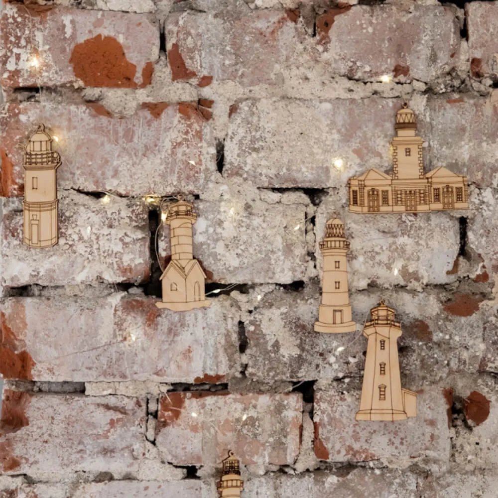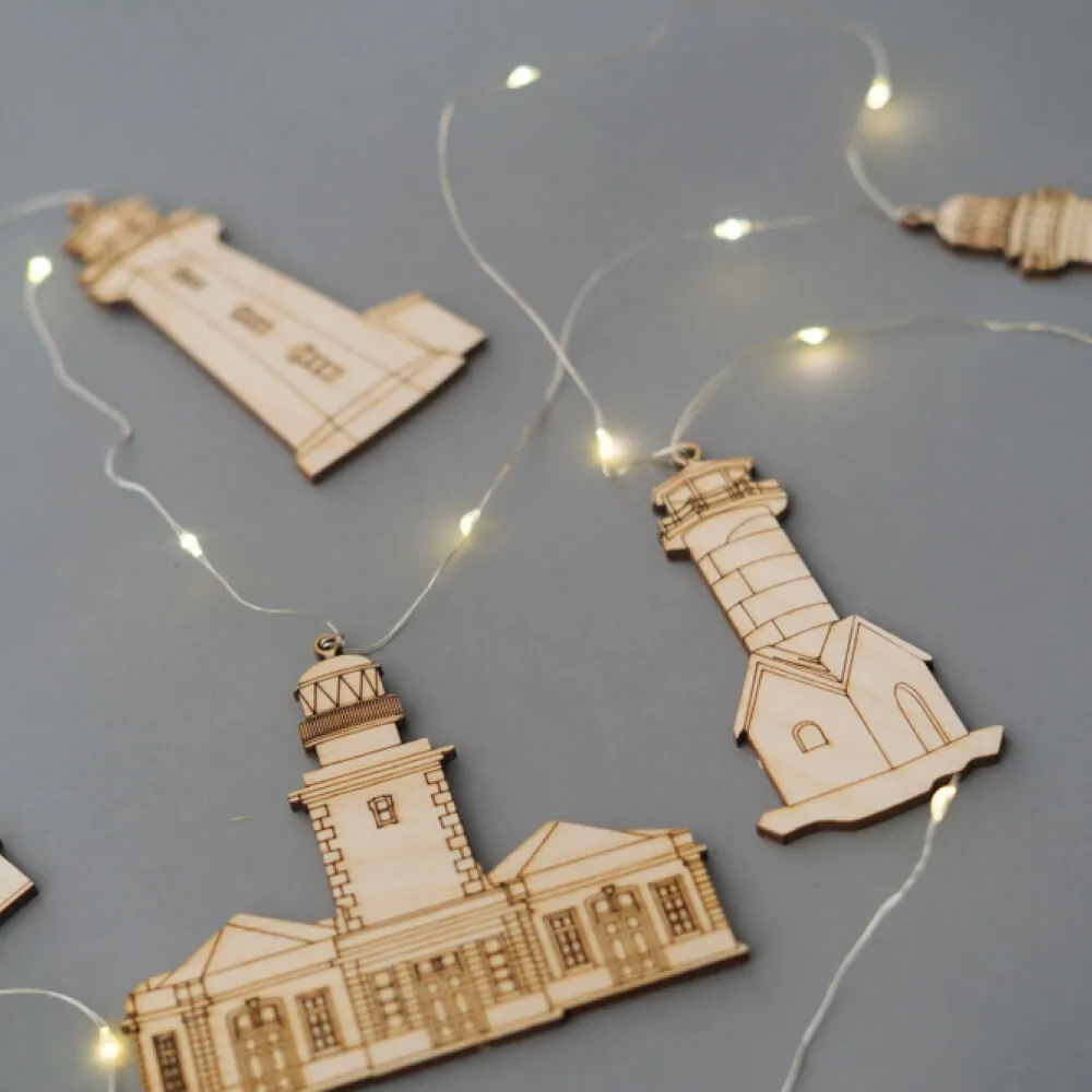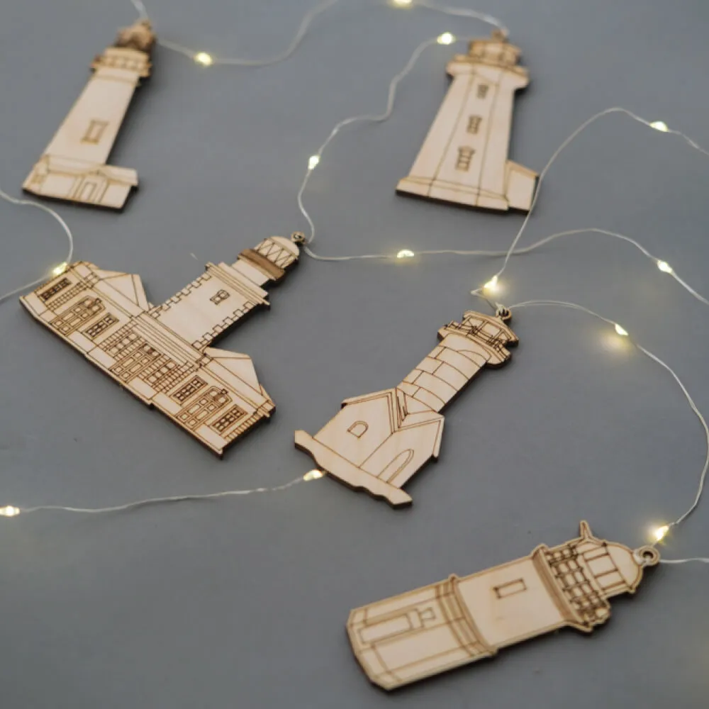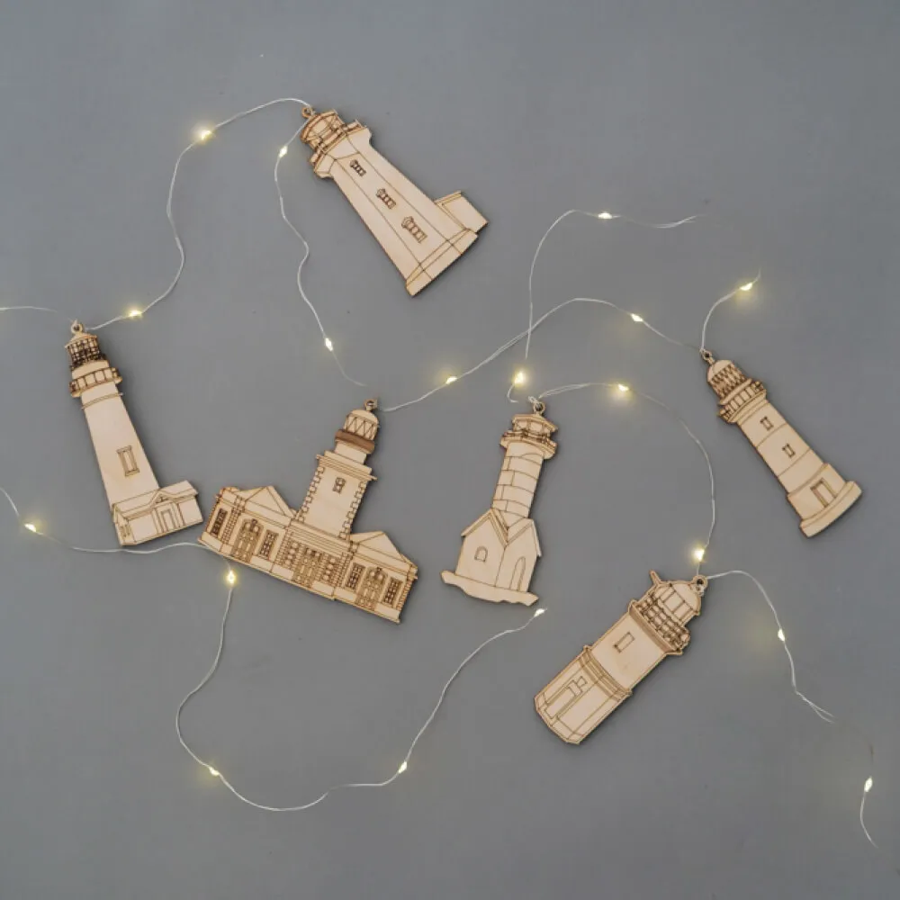 Гирлянда на батарейках с деревянными подвесами-маяками. Украсит любую стену, место над рабочим столом, коллекцию маяков или открытые полки в вашем доме.
