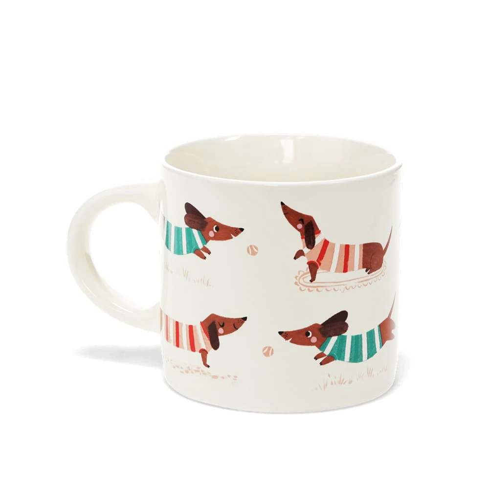 Начните утро с очаровательной кружки с таксами в полосатых свитерах!