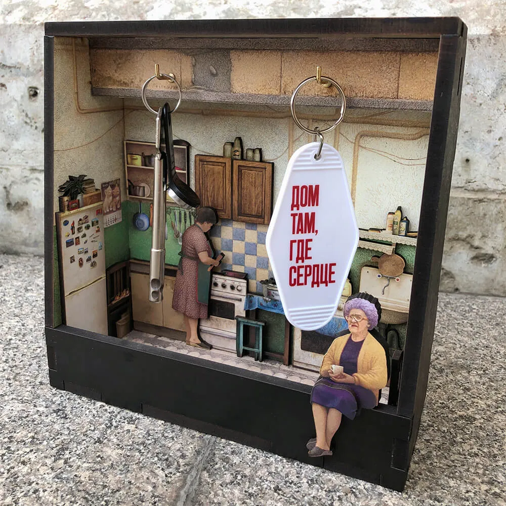 Перед вами настенная ключница «Коммунальная кухня» в собранном виде, в плотной картонной коробке - готовый подарок, не нуждающийся в переупаковке!