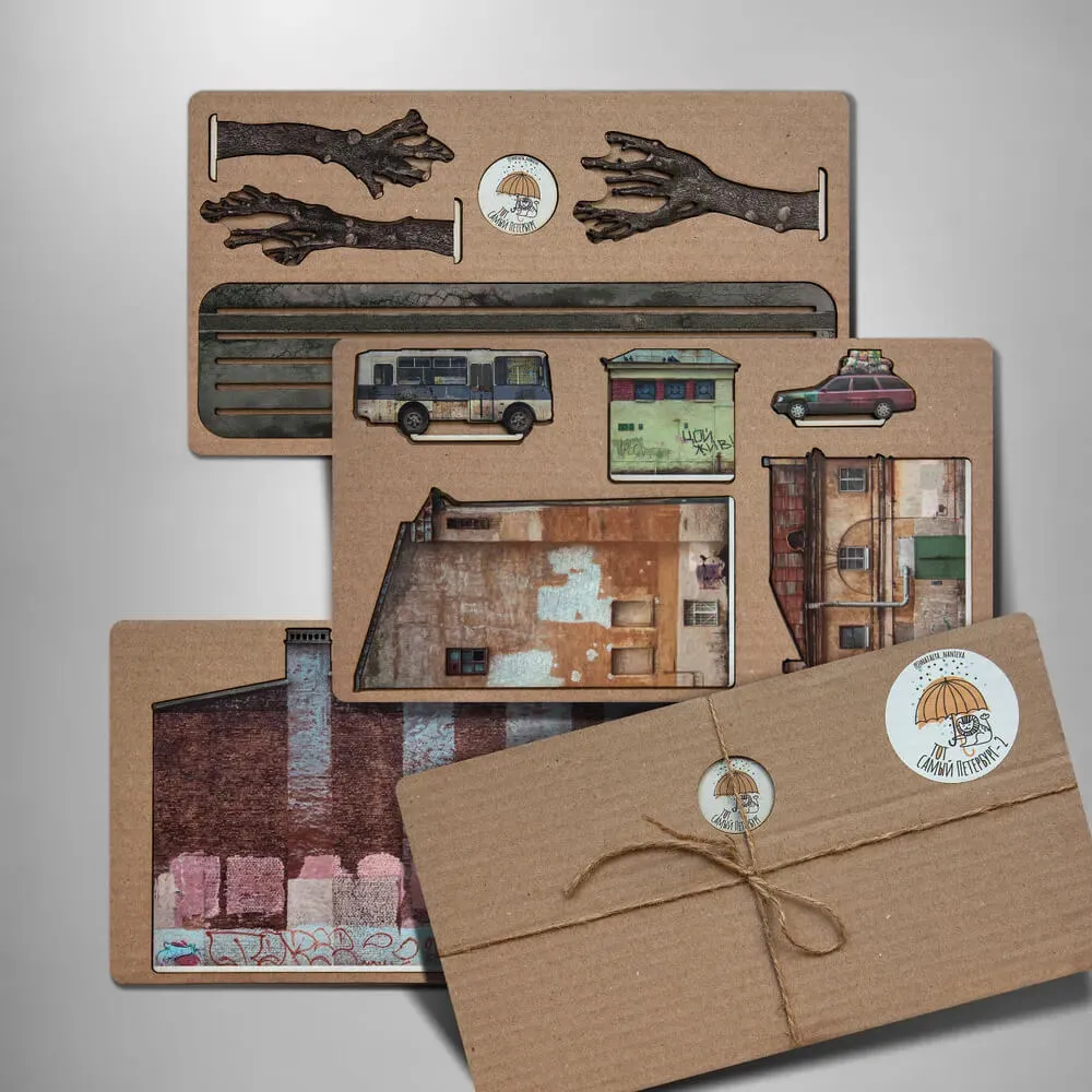 Перед вами набор-конструктор Натальи Наниевой, посвящённый тайным уголкам Петербурга. Такие виды не найдёшь на главных проспектах, это непарадный Петербург, знакомый каждому жителю и любопытному туристу.