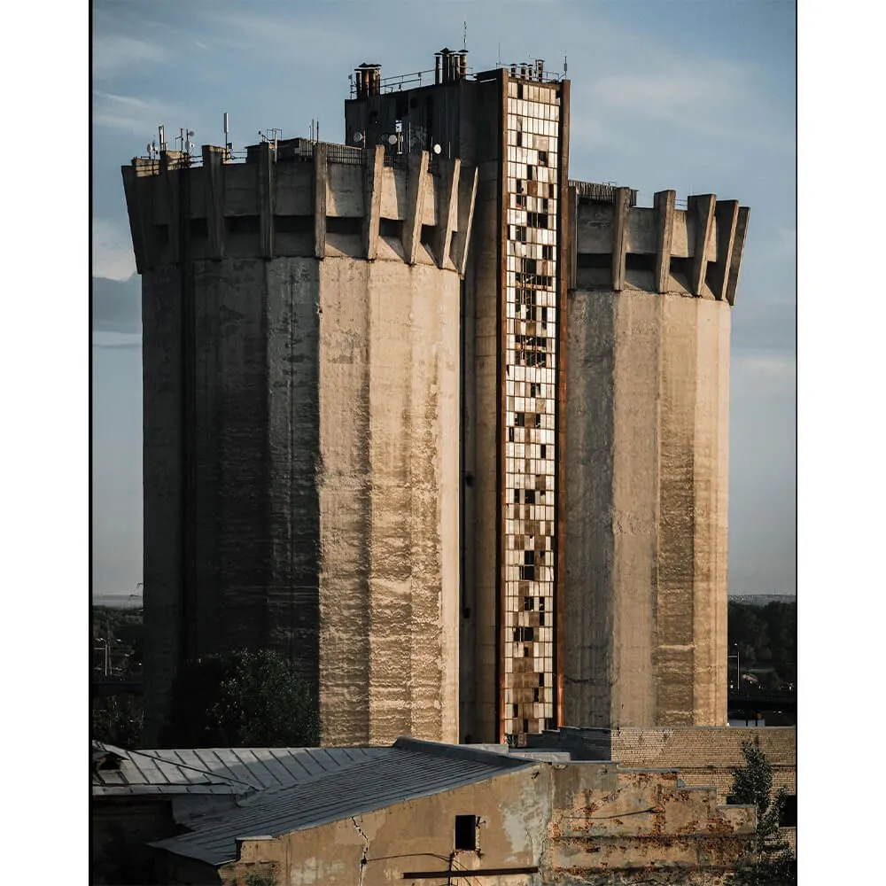 Представленный элеватор является настоящим памятником брутализма. Бетонный 62-метровый гигант был возведен всего лишь за пару месяцев на стыке двух рек - Самары и Волги. Вертикальная конструкция архитектурного творения обусловлена ограниченностью пространства для его постройки.