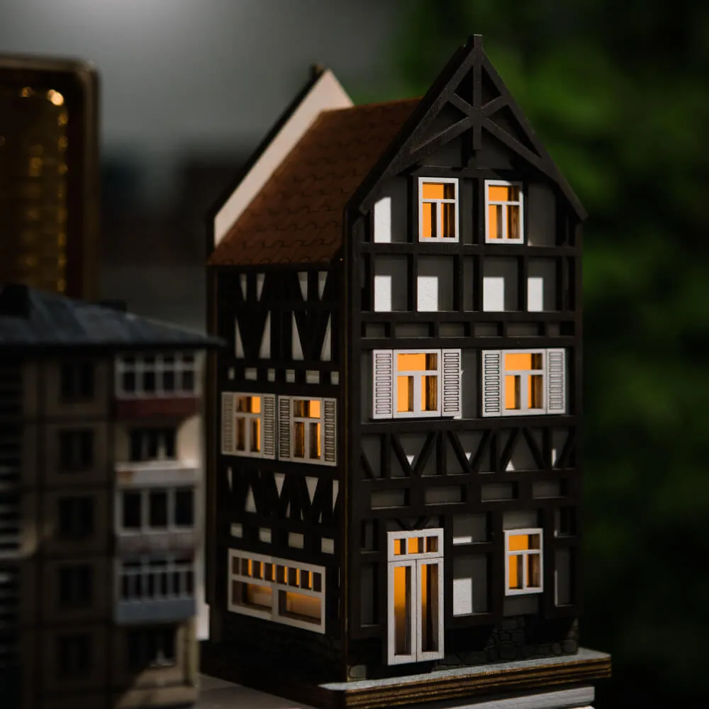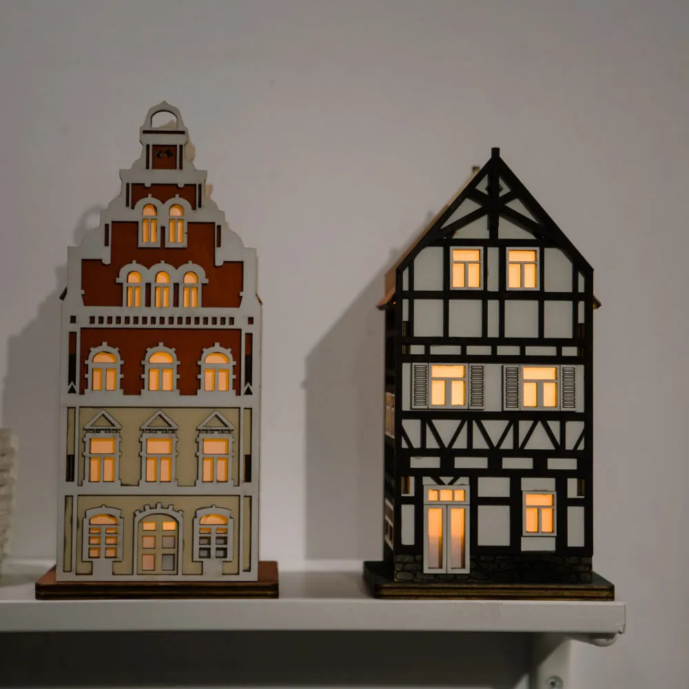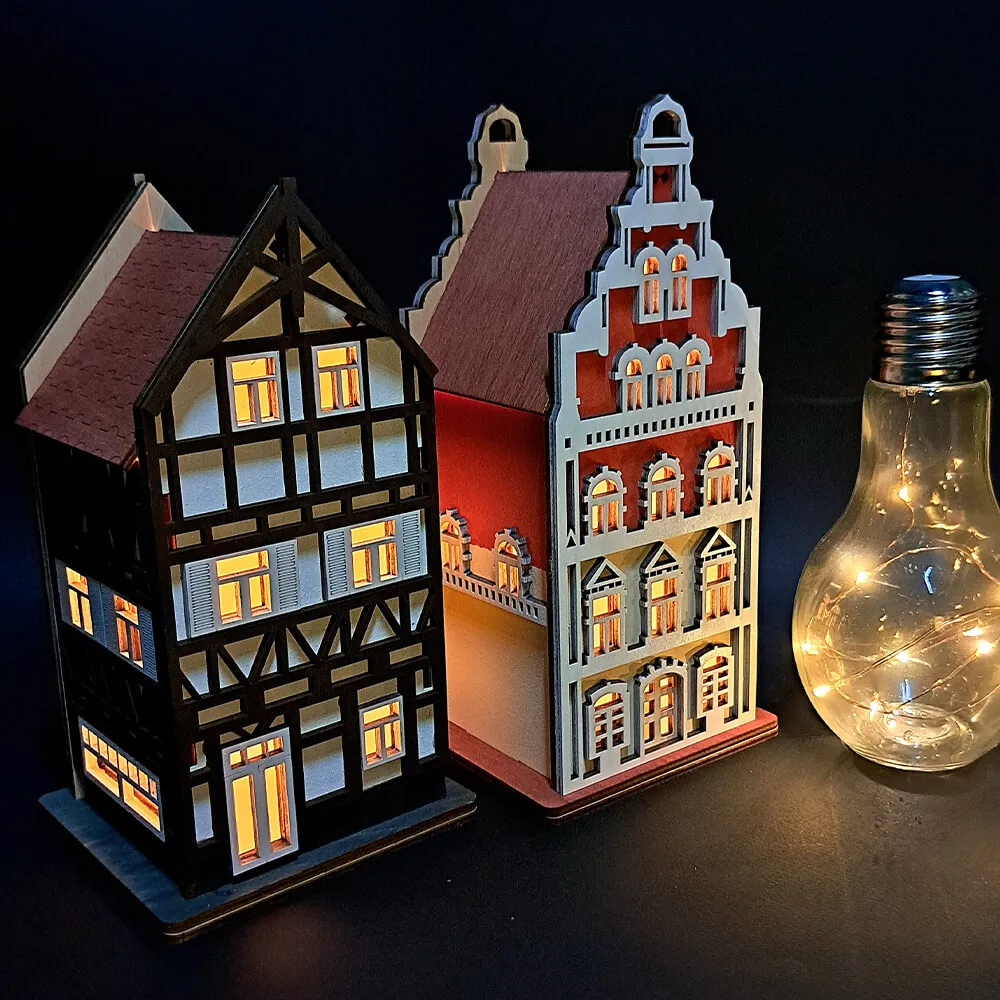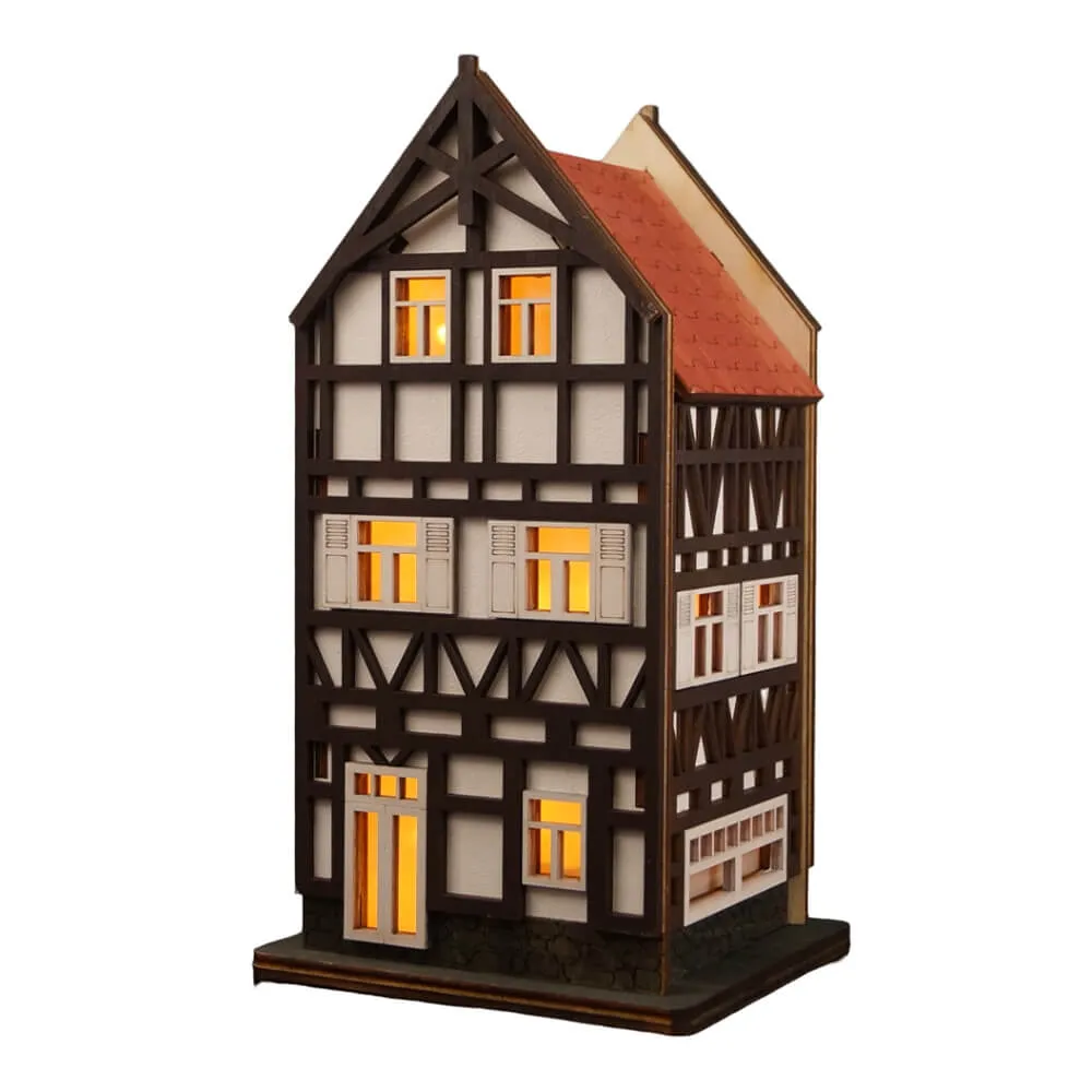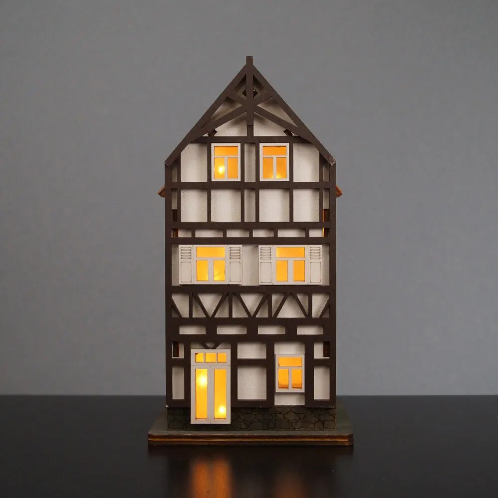 Светильник декоративный Домик из дерева в стиле фахверк. Замечательный вариант для декорирования дома и создания стильной и уютной атмосферы.