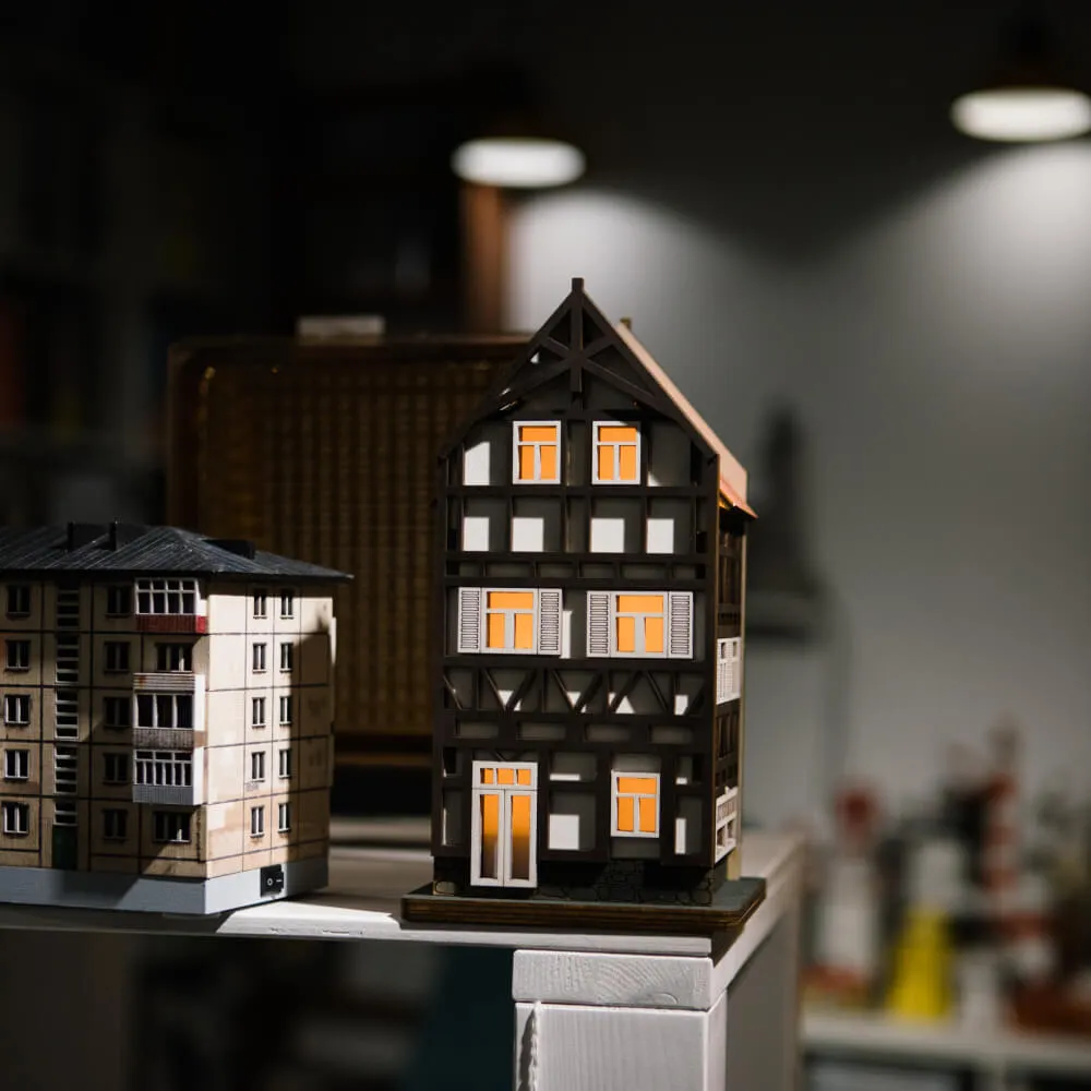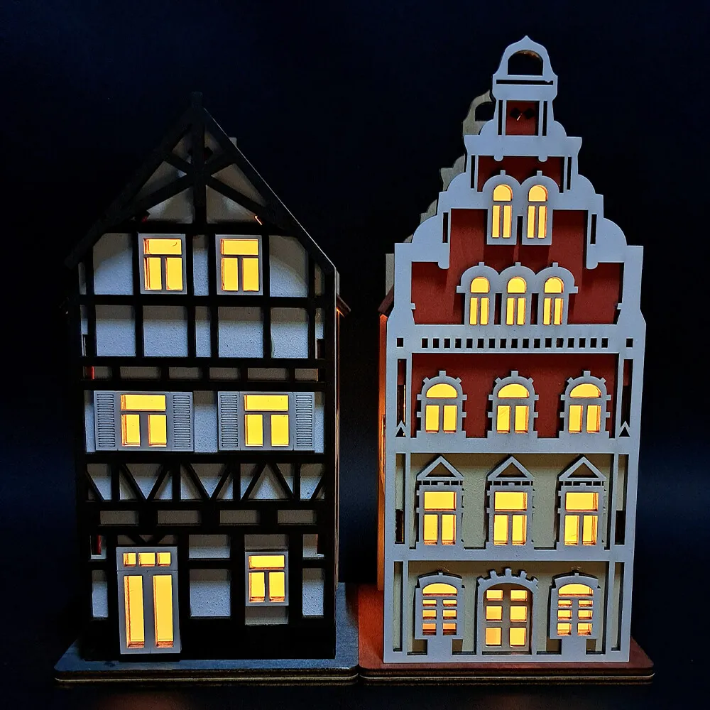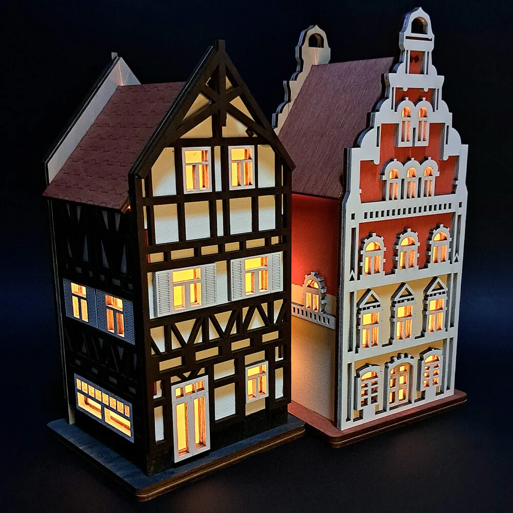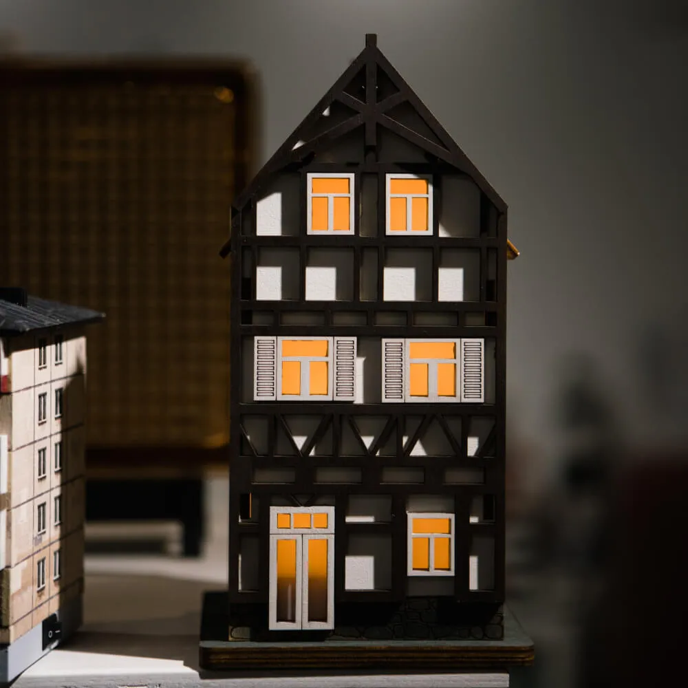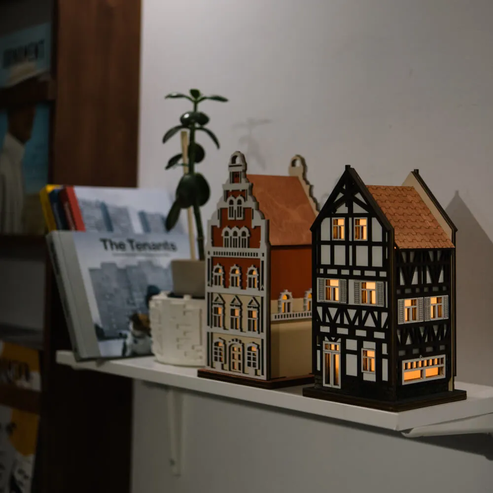 Светильник декоративный Домик из дерева в стиле фахверк. Замечательный вариант для декорирования дома и создания стильной и уютной атмосферы.
