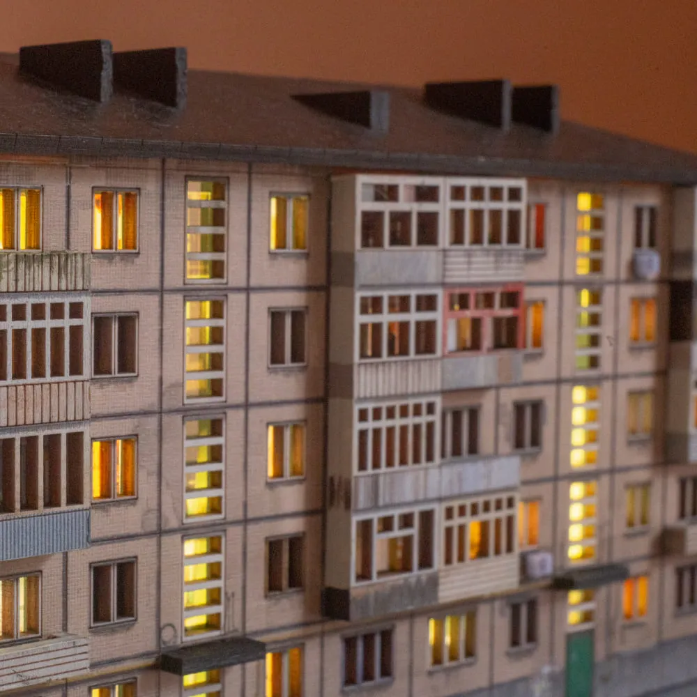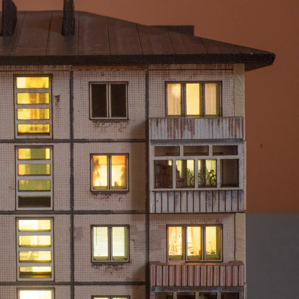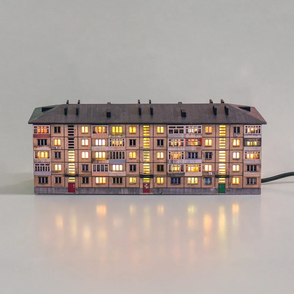 Ночник в виде типового панельного дома. Бесконечные ряды российских балконов, уютный свет и настоящая жизнь в окнах!