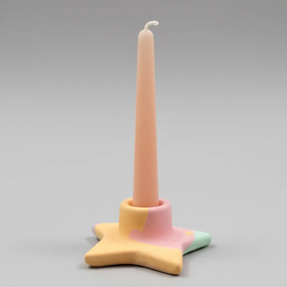 Минималистичный и символичный подсвечник в форме звезды, созданный вручную из экологичного и прочного гипса.