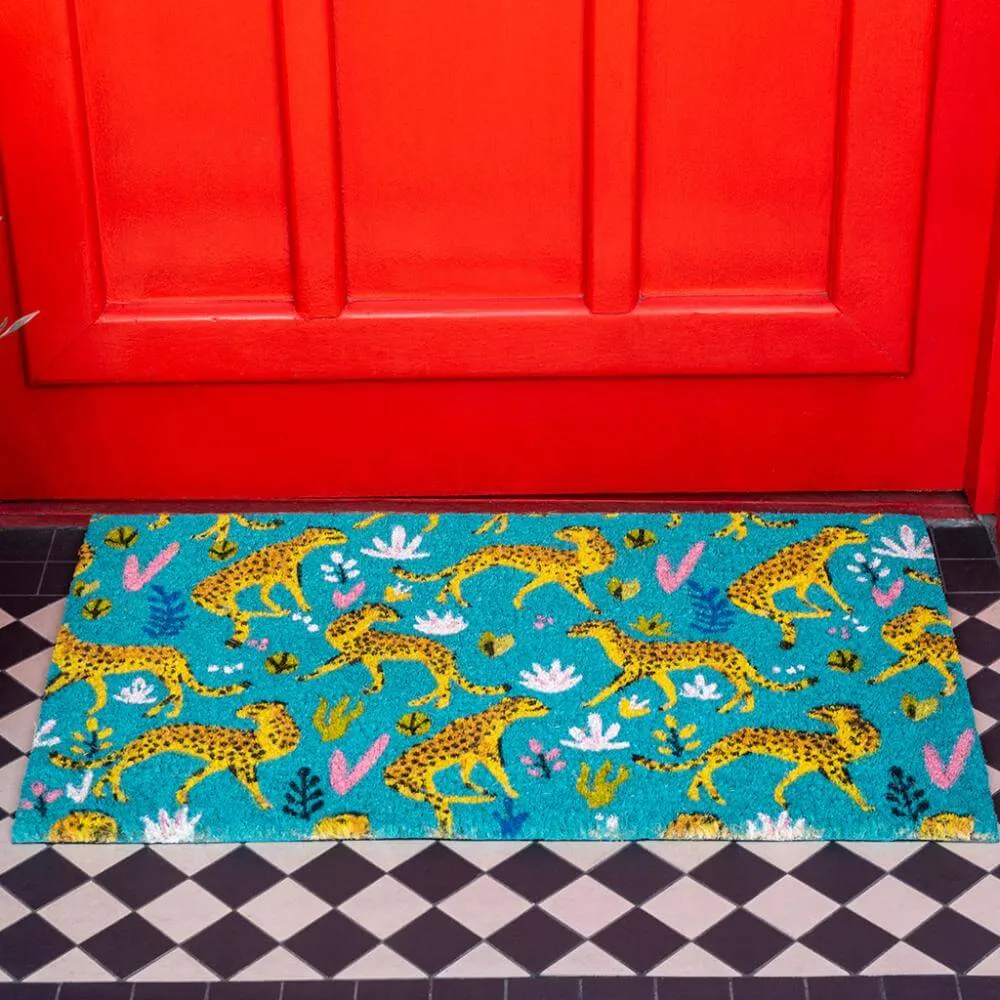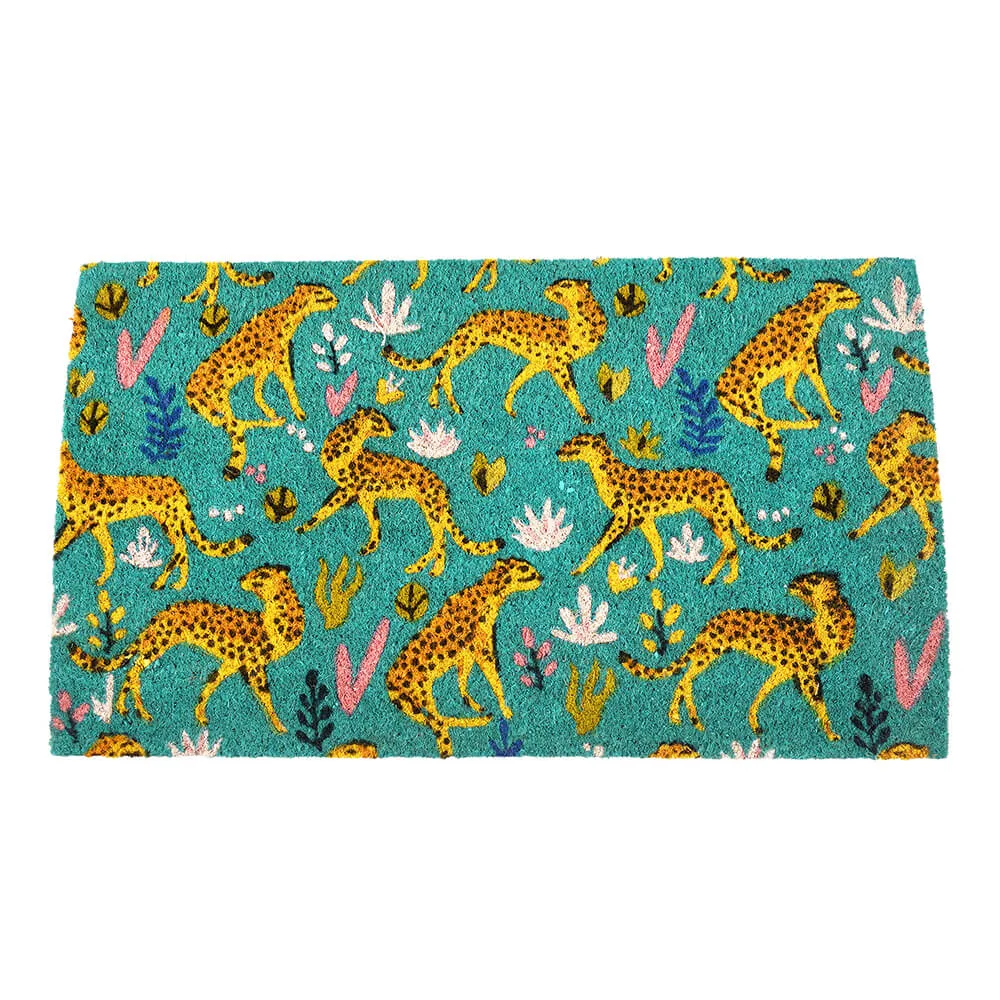Придверный коврик из кокосового волокна с гепардами.