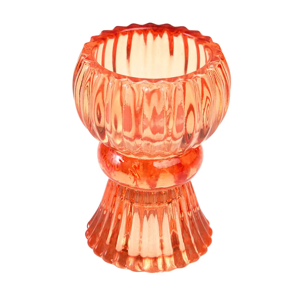 Двусторонний оранжевый подсвечник для столовых и чайных свечей.