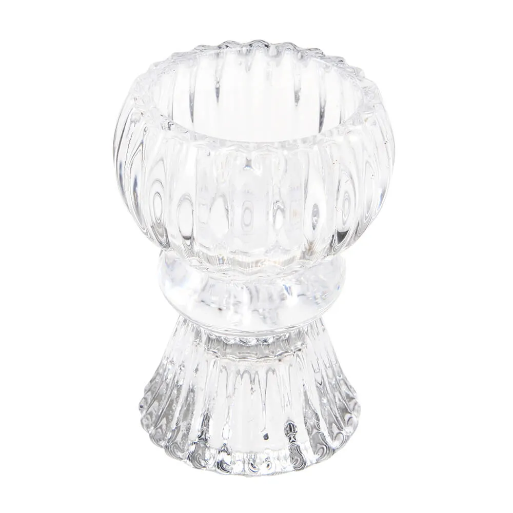 Двусторонний прозрачный подсвечник для столовых и чайных свечей.