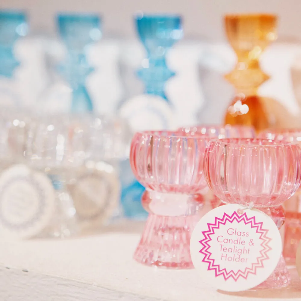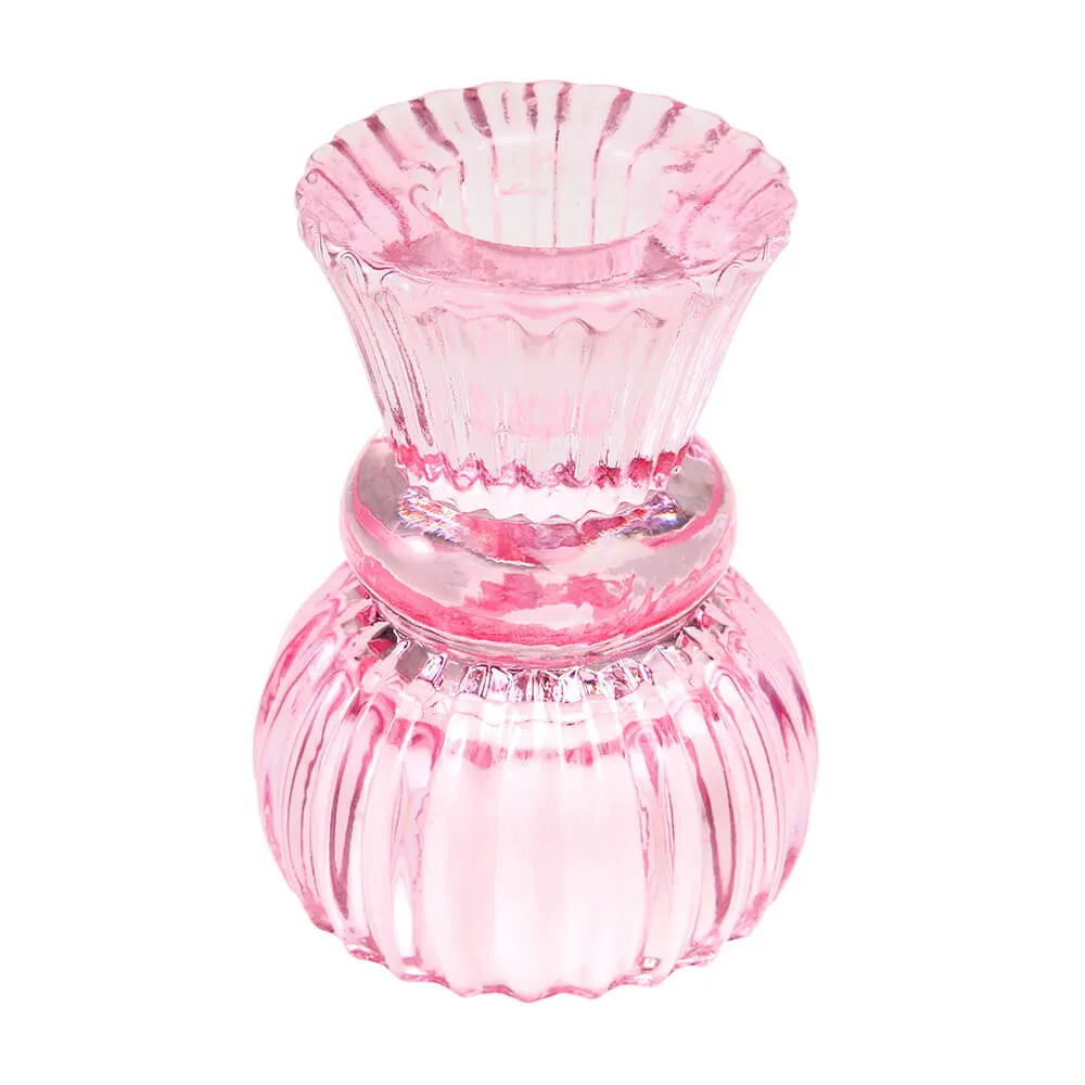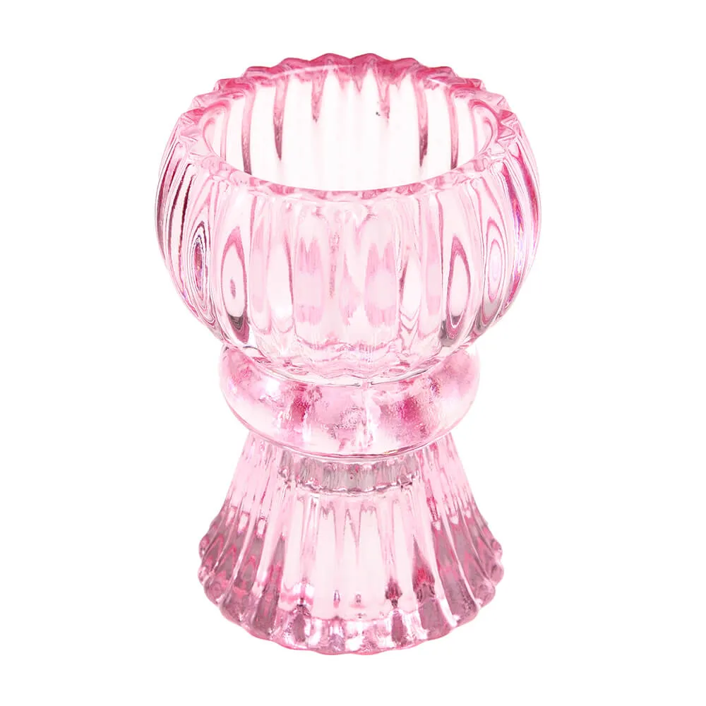 Двусторонний розовый подсвечник для столовых и чайных свечей.