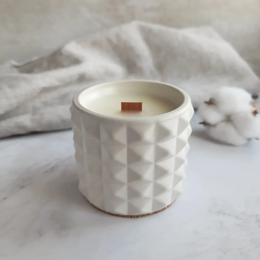 Ароматная свеча из натурального соевого воска с деревянным фитилём в бетонном кашпо Колючка. Деревянный фитиль потрескивает, будто маленький костерок, создавая уютную обстановку, помогая обрести спокойствие и настроиться на нужную волну.