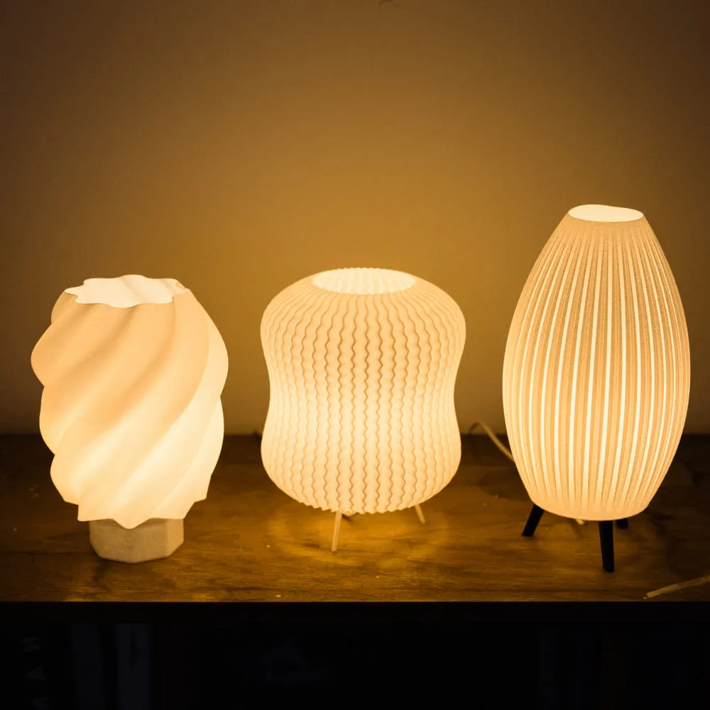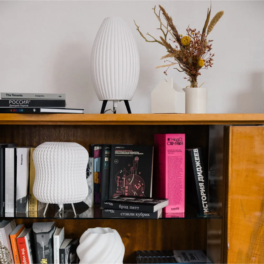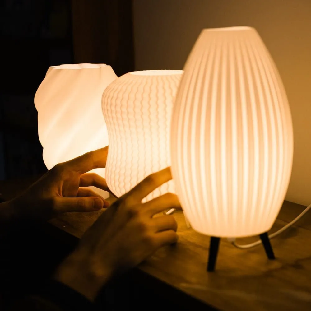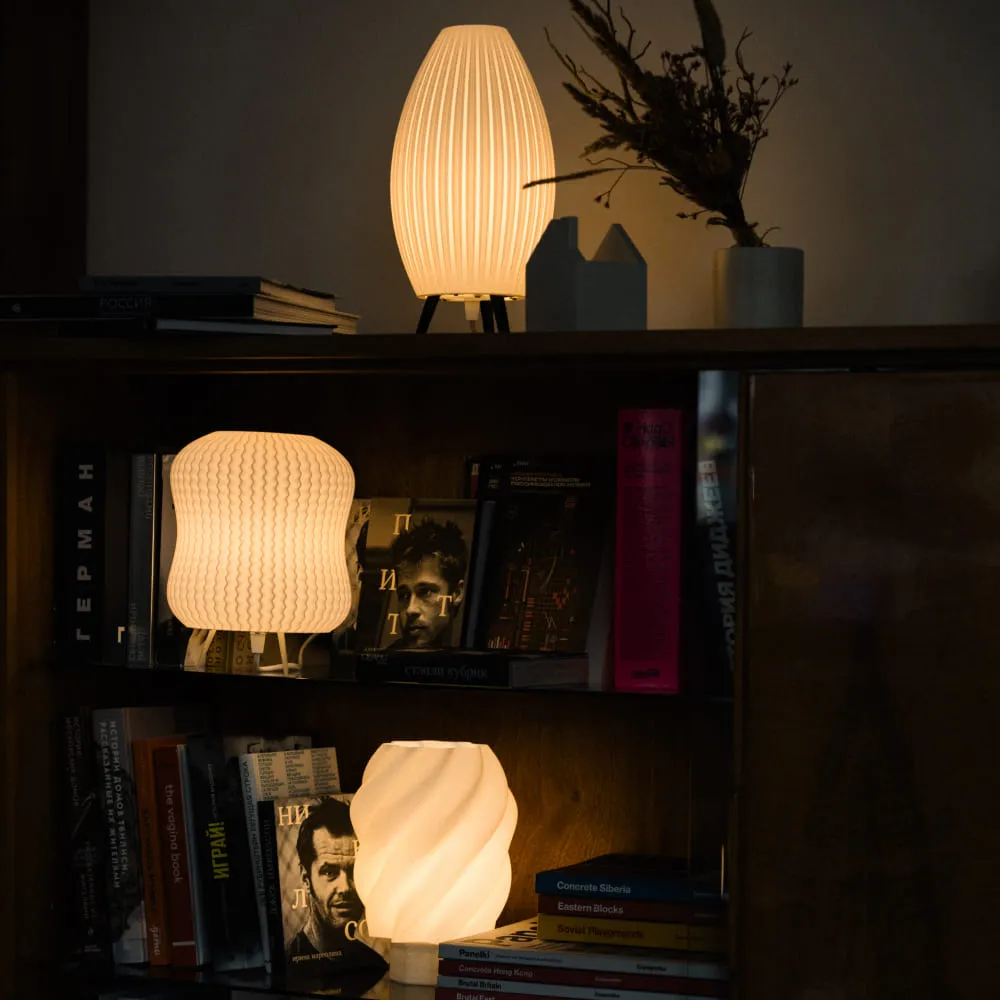 Одним из референсов при проектировании был арахис в скорлупе. Параметрический волнистый паттерн являет собой упорядоченную математикой природу. Прозрачная версия светильника неожиданно стала напоминать ретро бра из стекла.