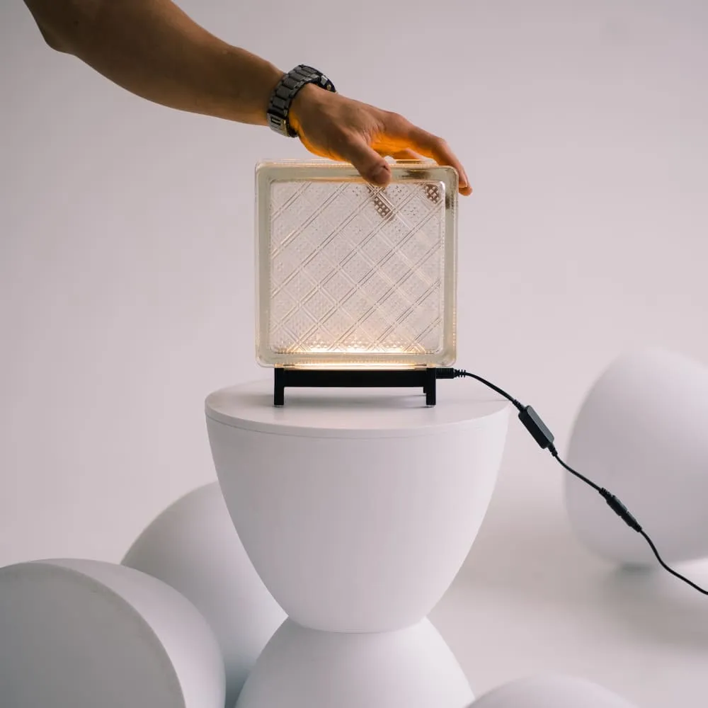 *Светильник является частью апсайкл проекта, цель которого - спасти как можно больше советских стеклоблоков и придать им вторую жизнь, сохраняя тем не менее первоначальный концепт - проводника света.