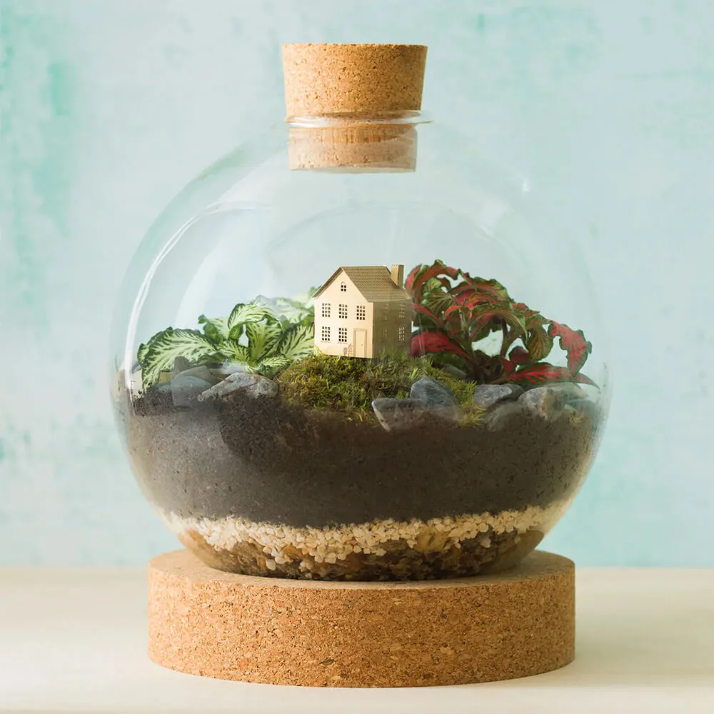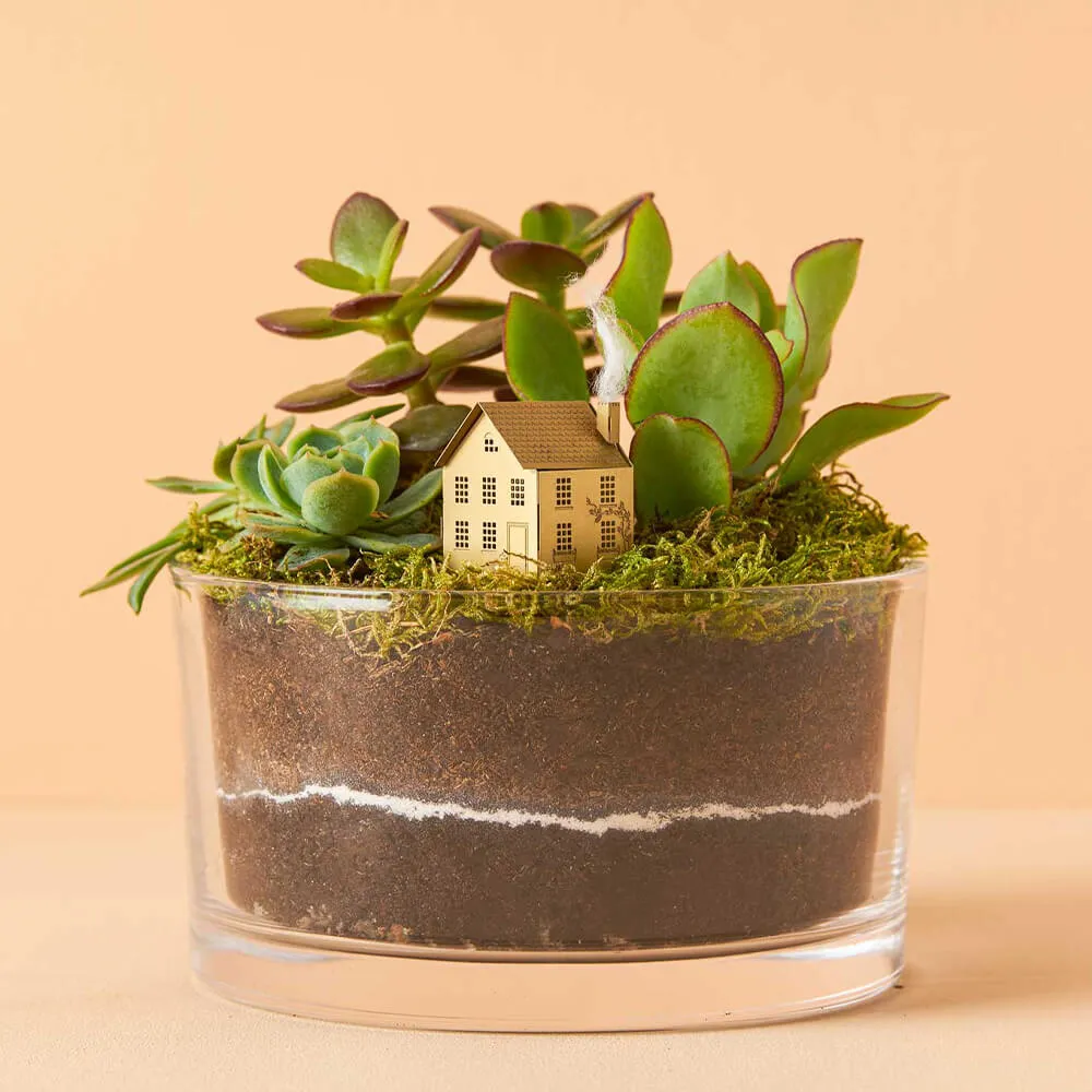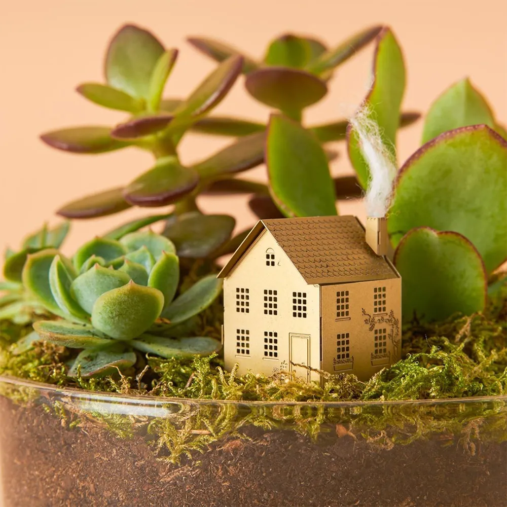 Эта мини модель дома украсит вершину поросшего мхом холмика в террариуме или рабочий стол. Дом украшен изящной гравировкой в виде горшков с цветами у входа, вьющейся глицинии на стене и аккуратного дымохода.