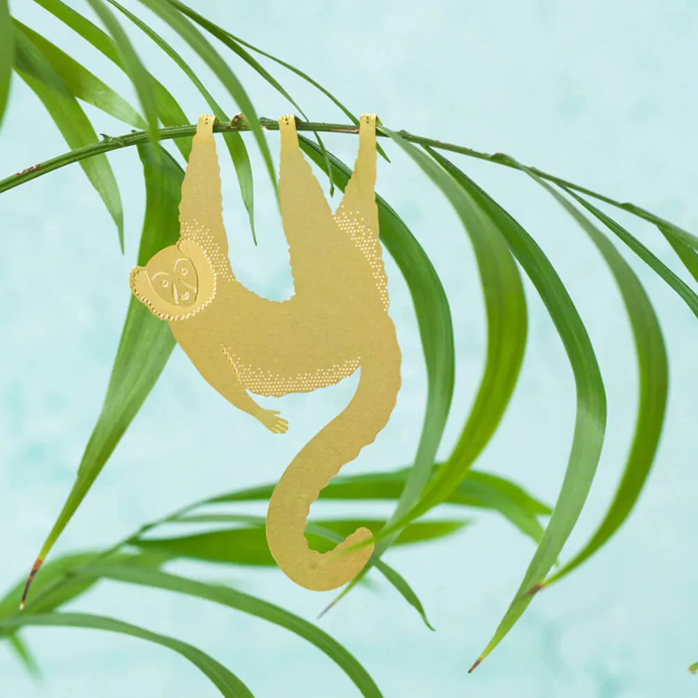 Милый лемур из коллекции Plant Animal свисает с растений, аккуратно складывая ручки, чтобы зацепиться за их стебли.